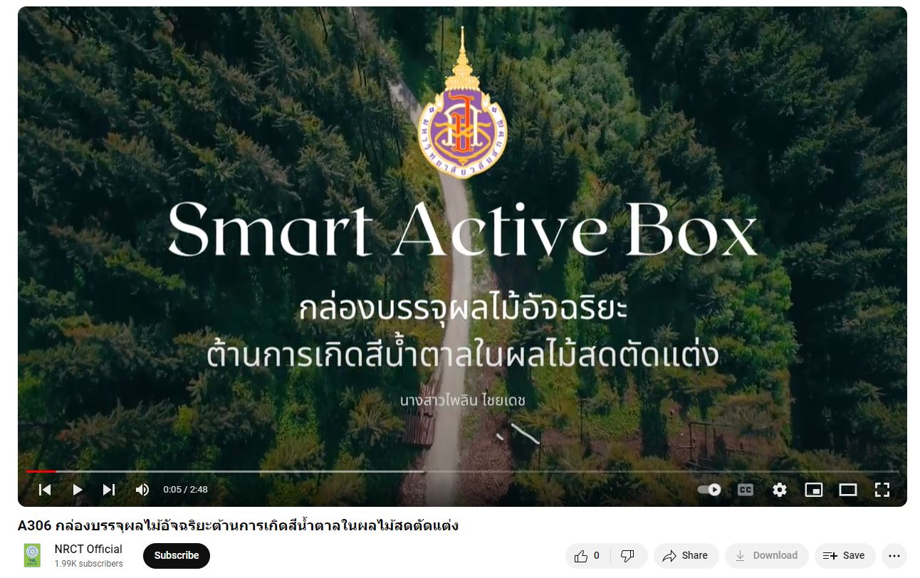 - ผลงานสายนวัตกรรมอุดมศึกษา ประจำปี 2566 ด้านการเกษตรและอุตสาหกรรมการเกษตร: กล่องบรรจุผลไม้อัจฉริยะต้านการเกิดสีน้ำตาลในผลไม้สดตัดแต่ง