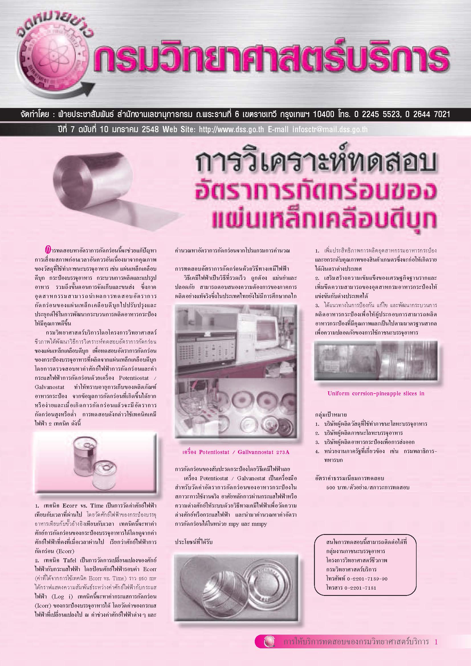 - รายงานกิจกรรมของกรมวิทยาศาสตร์บริการ ปีที่ 7 ฉบับที่ 10 มกราคม 2548