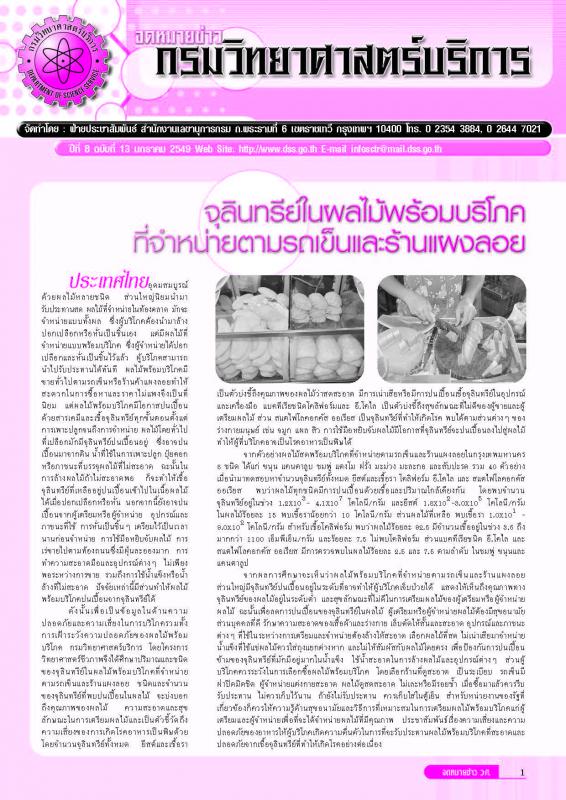 - รายงานกิจกรรมของกรมวิทยาศาสตร์บริการ ปีที่ 8 ฉบับที่ 13 พฤษภาคม 2549