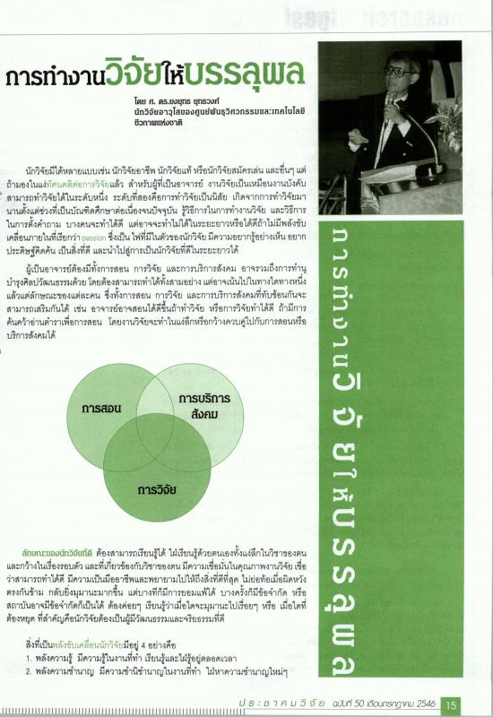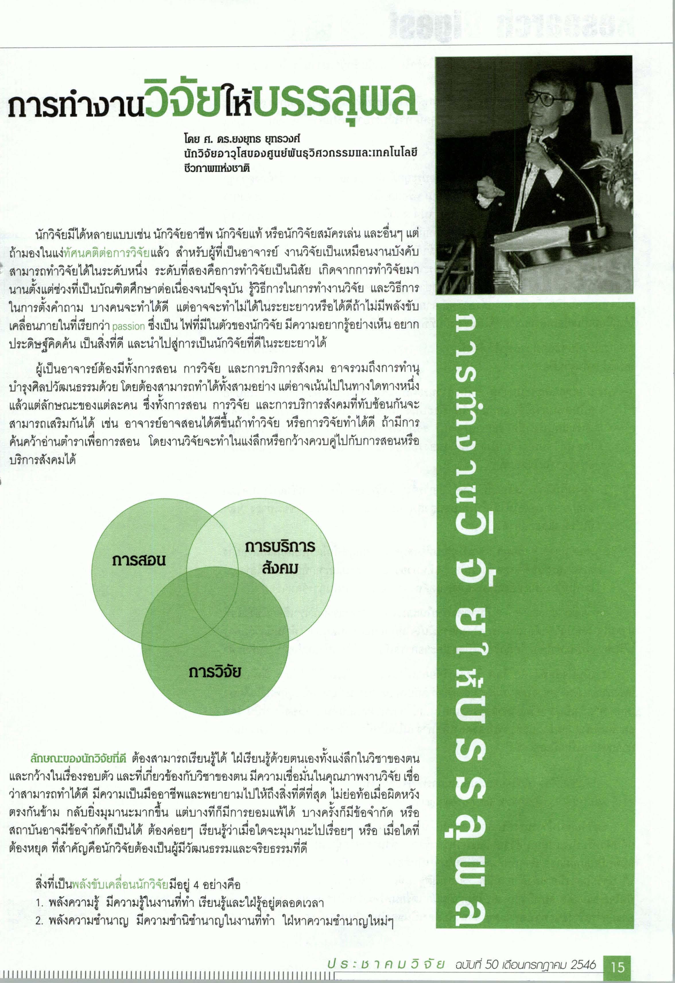 ศ.ดร.ยงยุทธ ยุทธวงศ์ : การทำงานวิจัยให้บรรลุผล ประชาคมวิจัย ฉบับที่ 50 กรกฎาคม 2546