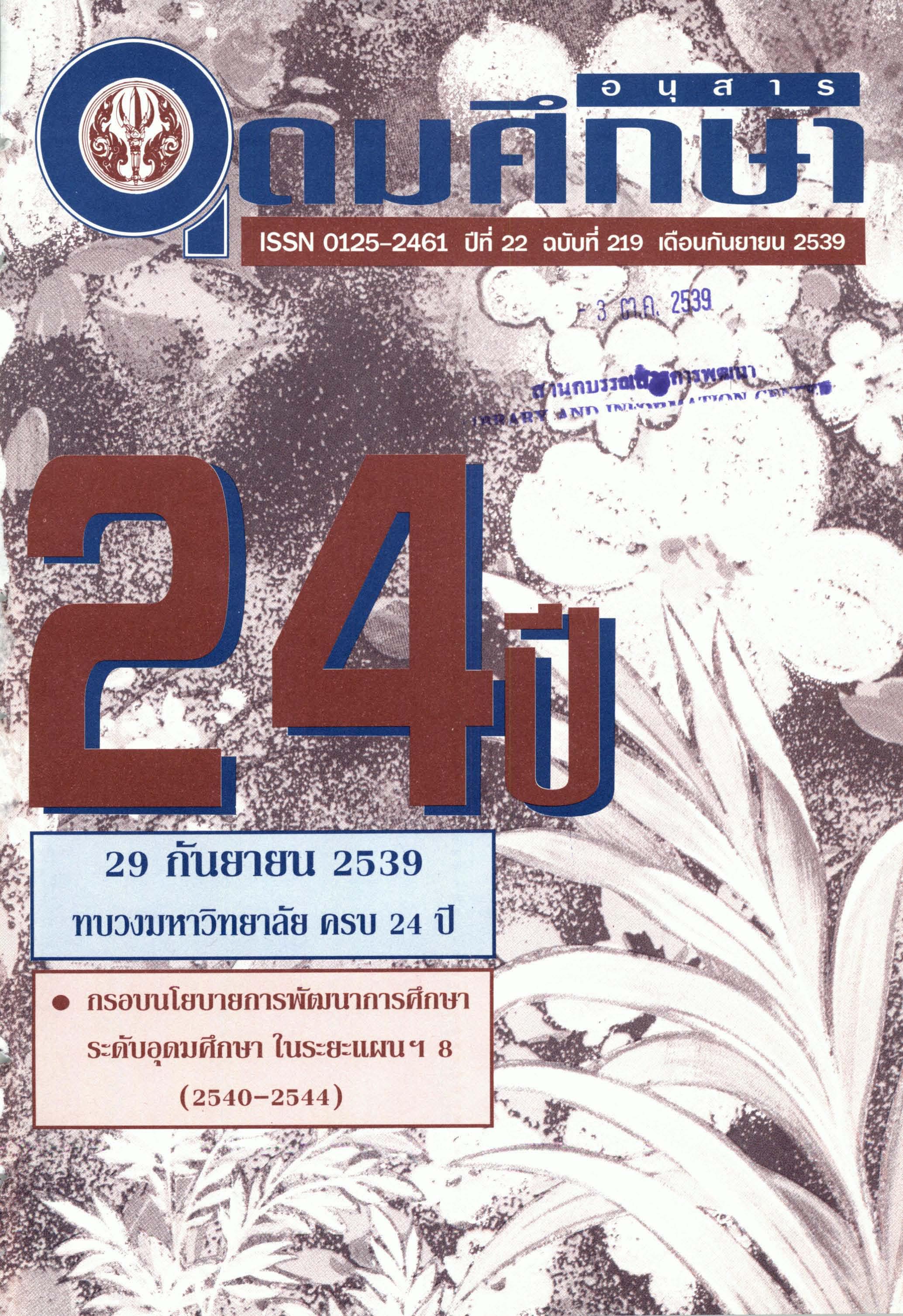 อนุสารอุดมศึกษา ปีที่ 22 ฉบับที่ 219 กันยายน 2539