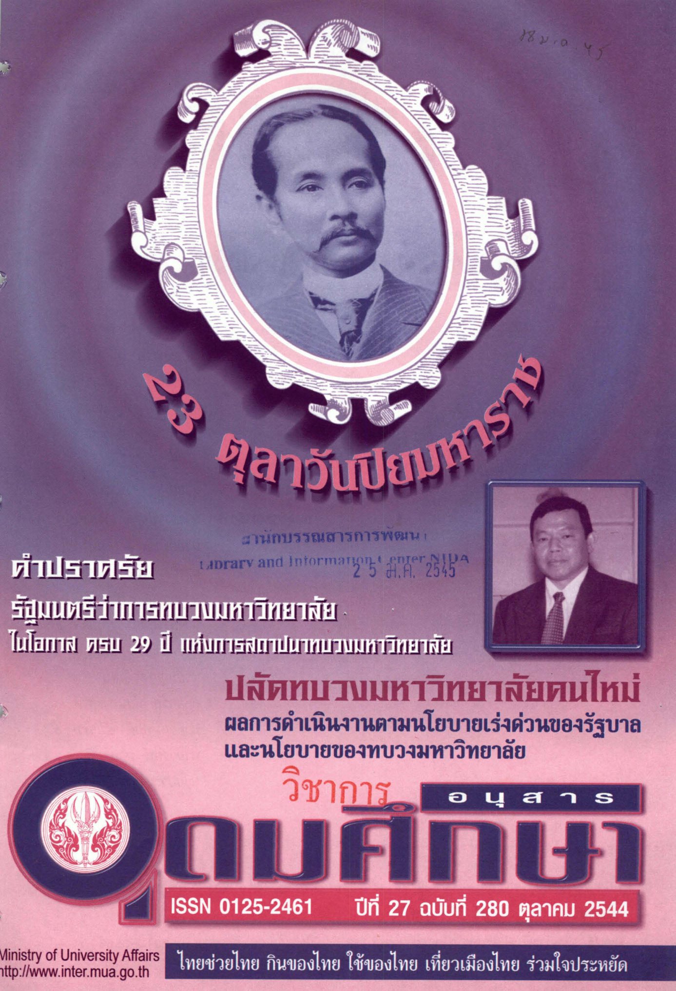 อนุสารอุดมศึกษา ปีที่ 27 ฉบับที่ 280 ตุลาคม 2544