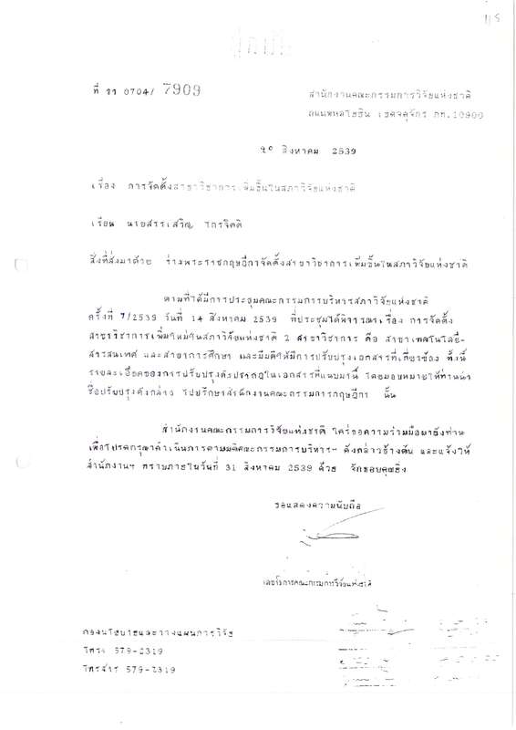 การจัดตั้งสาขาวิชาการเพิ่มขึ้นในสภาวิจัยแห่งชาติ