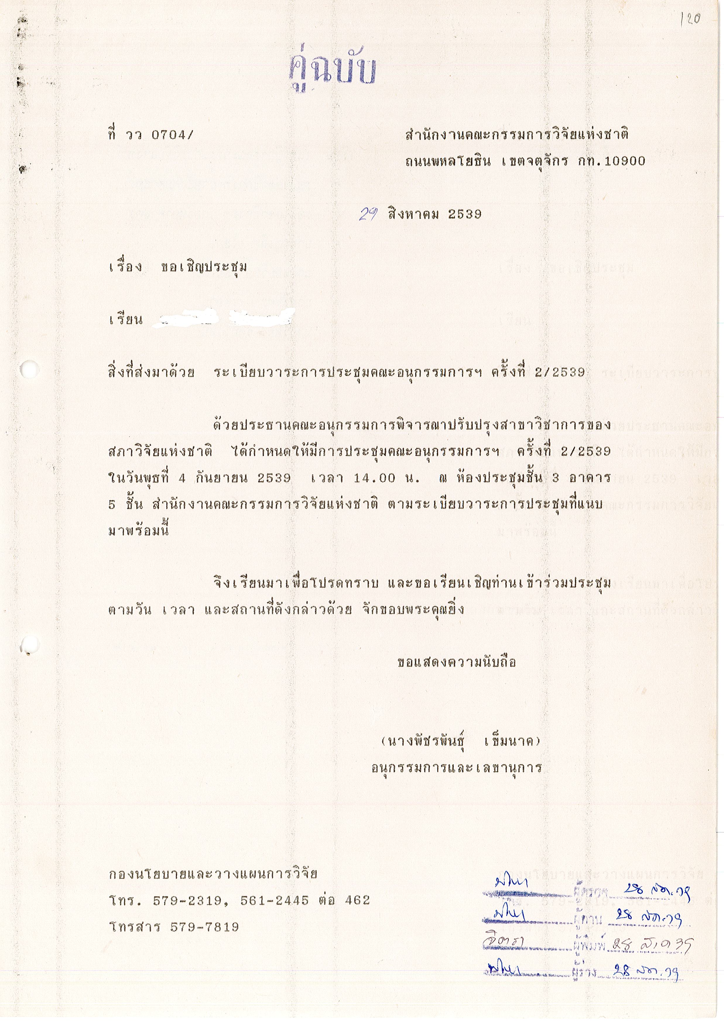 ขอเชิญประชุมปรับปรุงสาขาวิชาการของสภาวิจัยแห่งชาติ