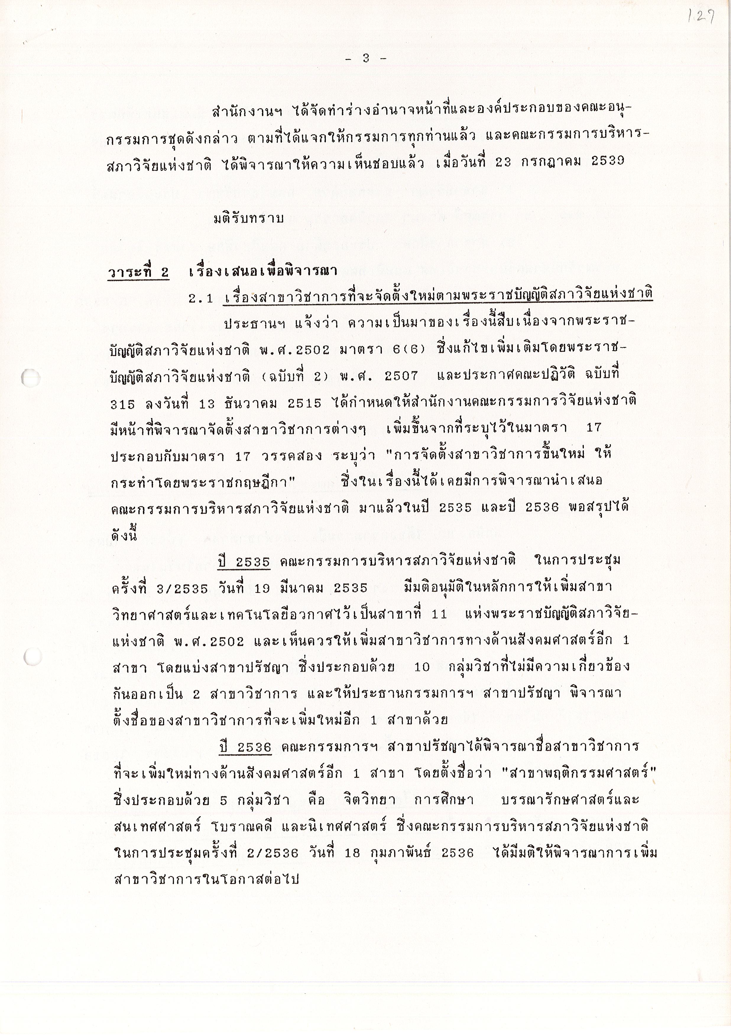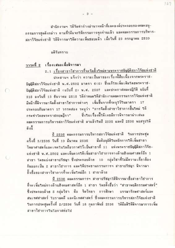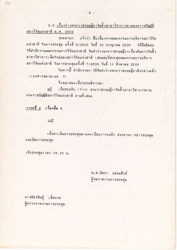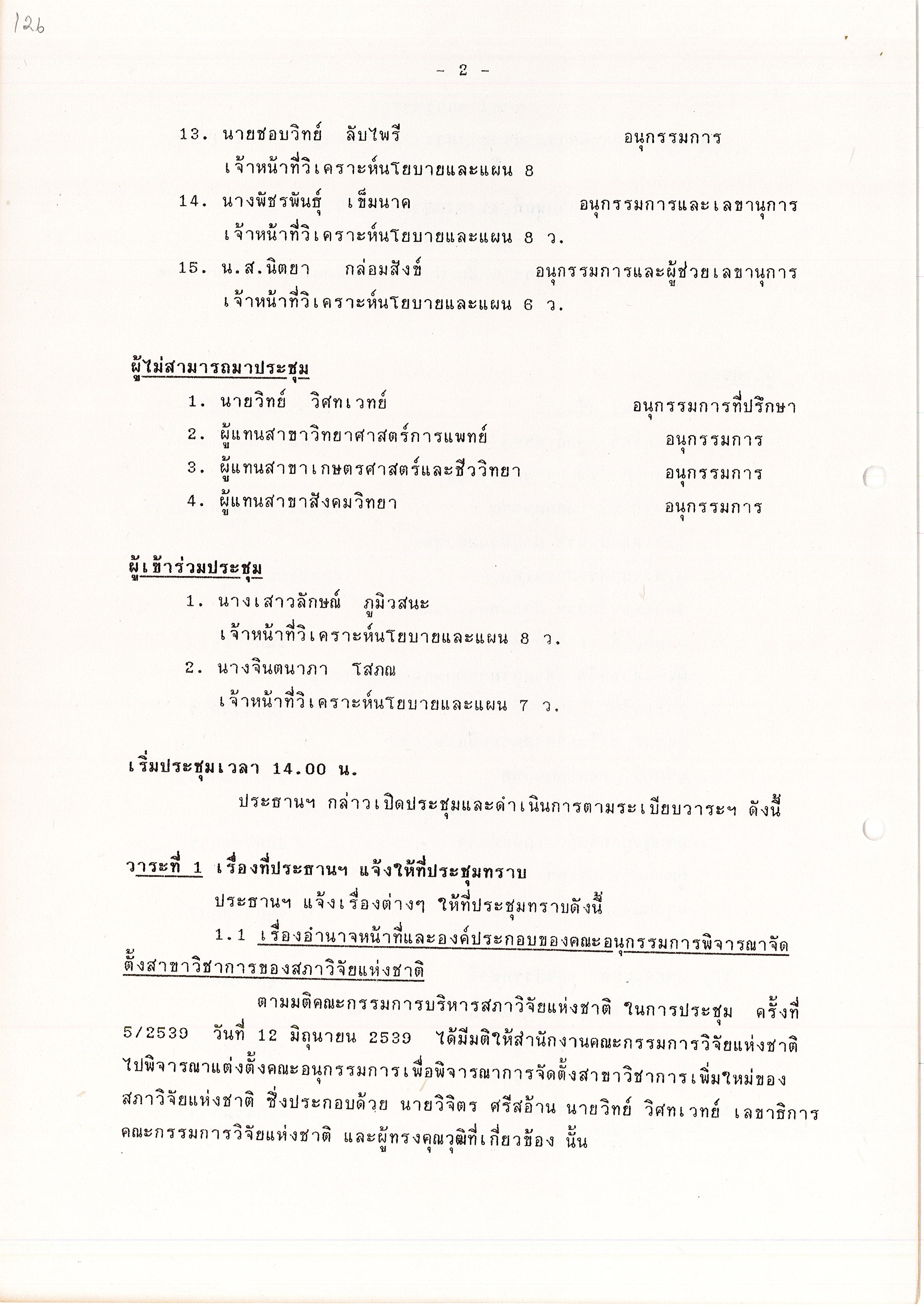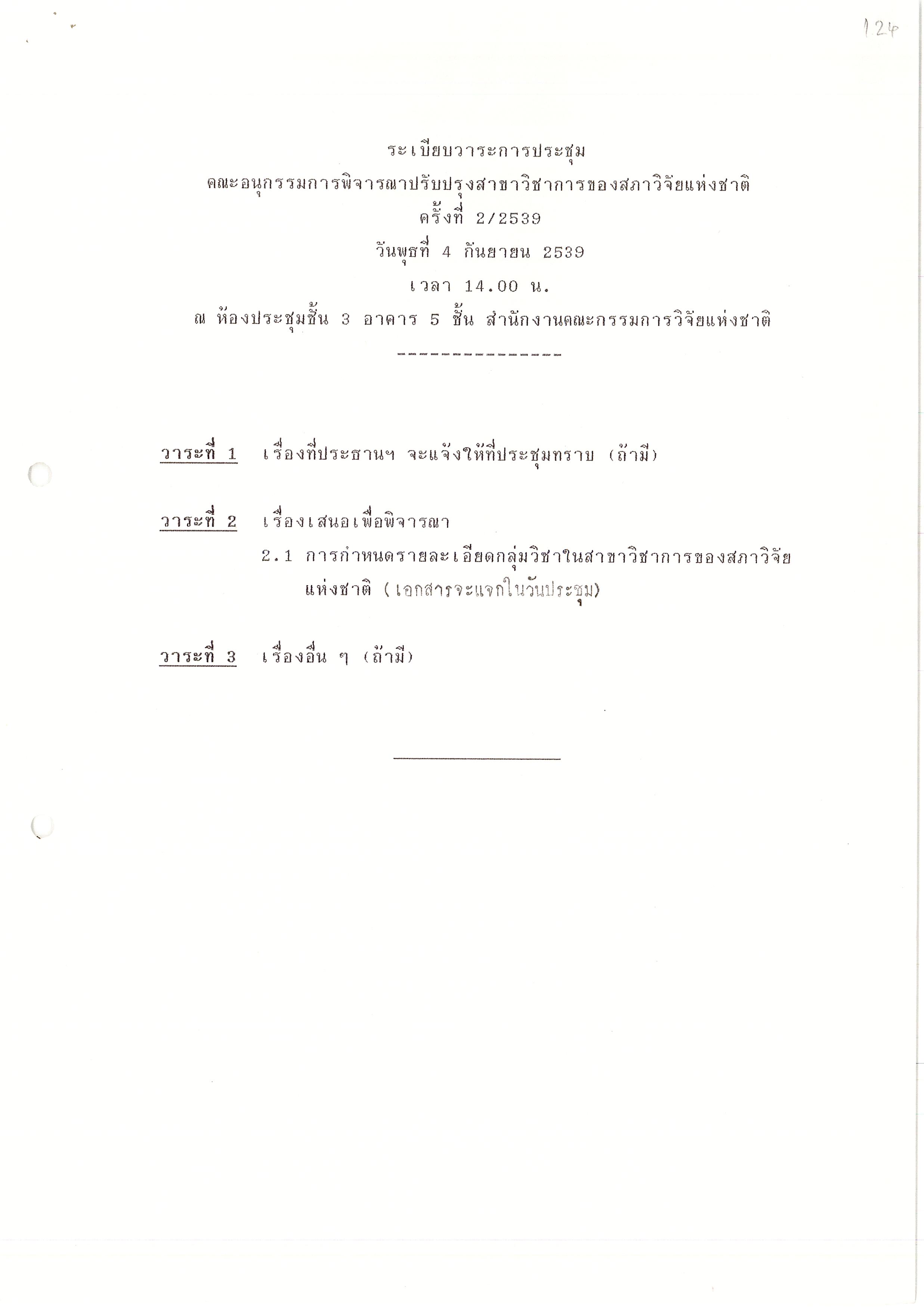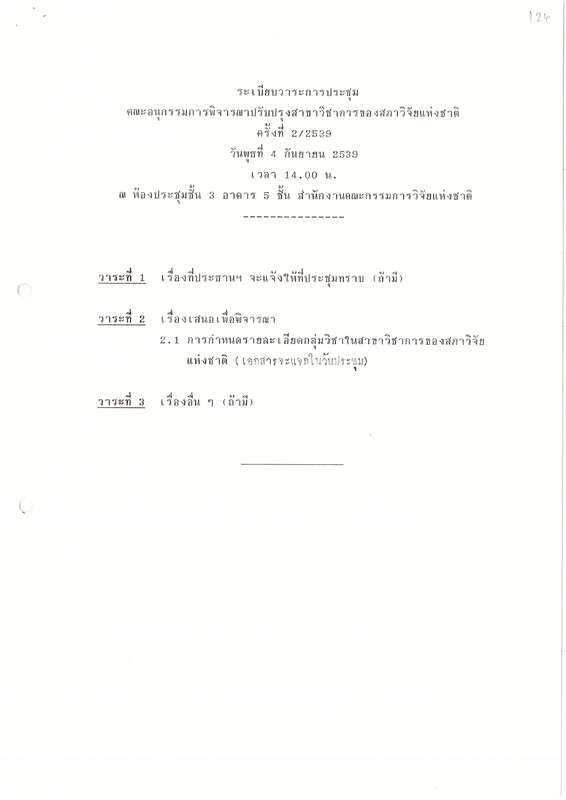 - ระเบียบวาระการประชุม คณะอนุกรรมการพิจารณาปรับปรุงสาขาวิชาการของสภาวิจัยแห่งชาติ ครั้งที่ 2/2539