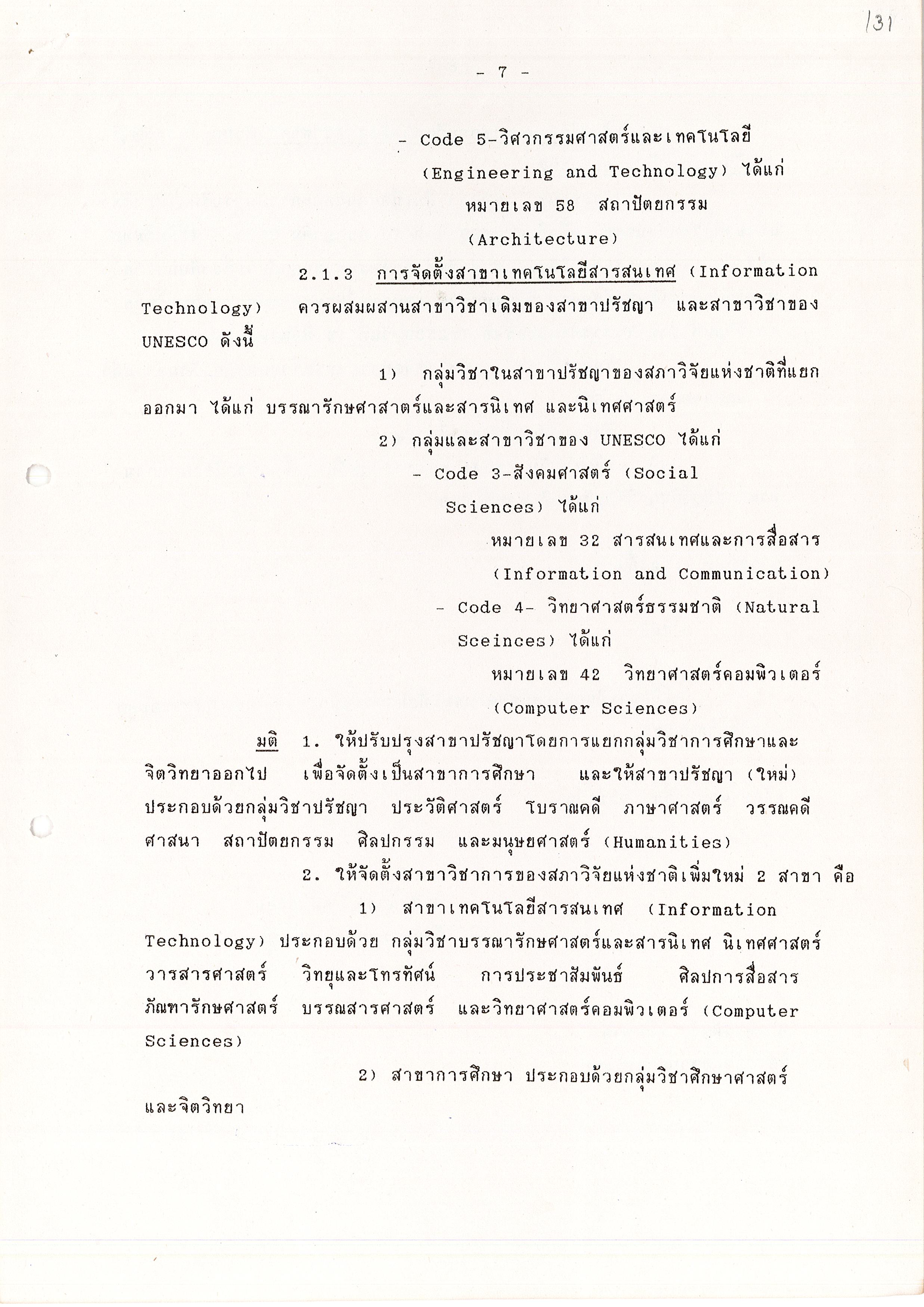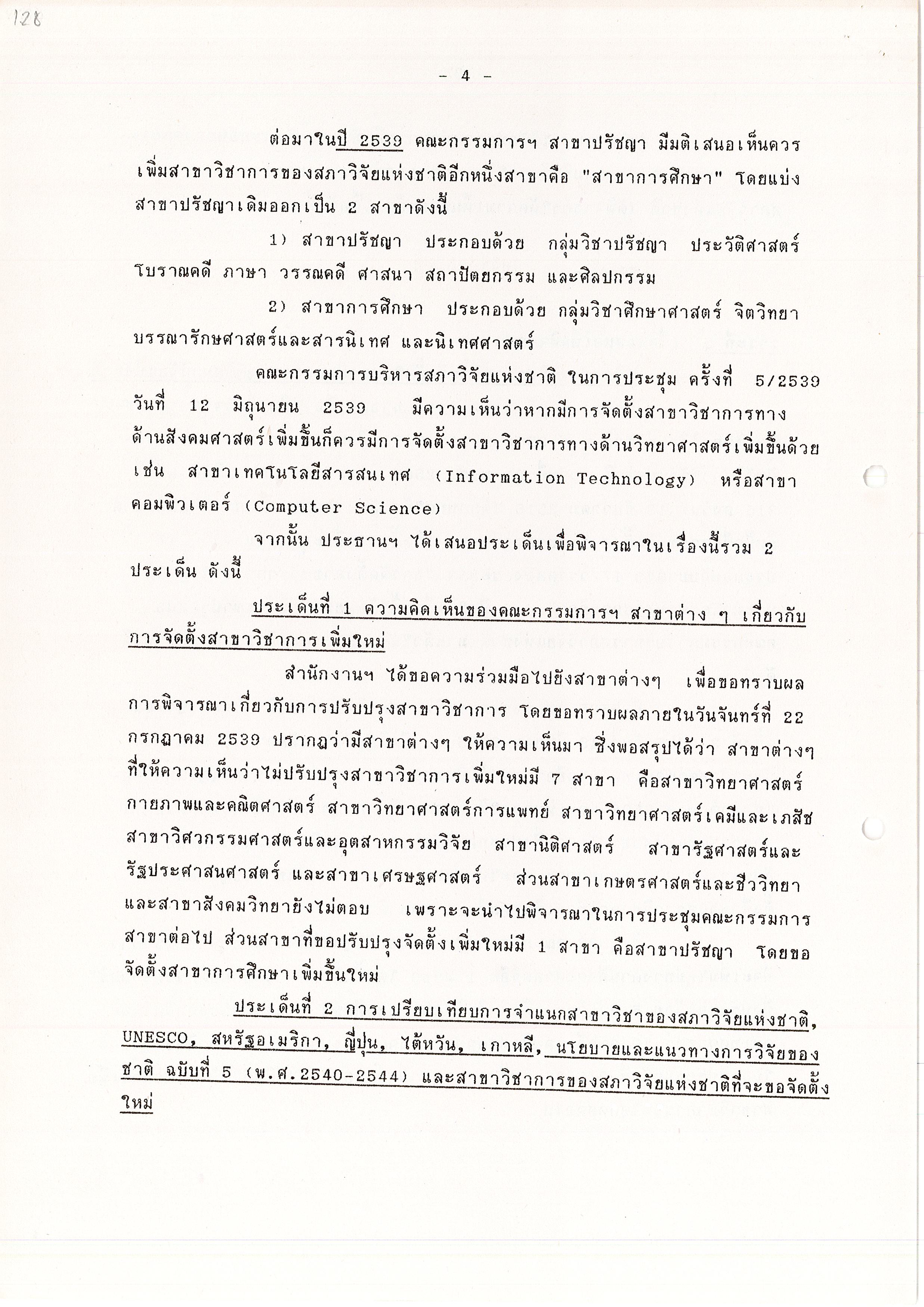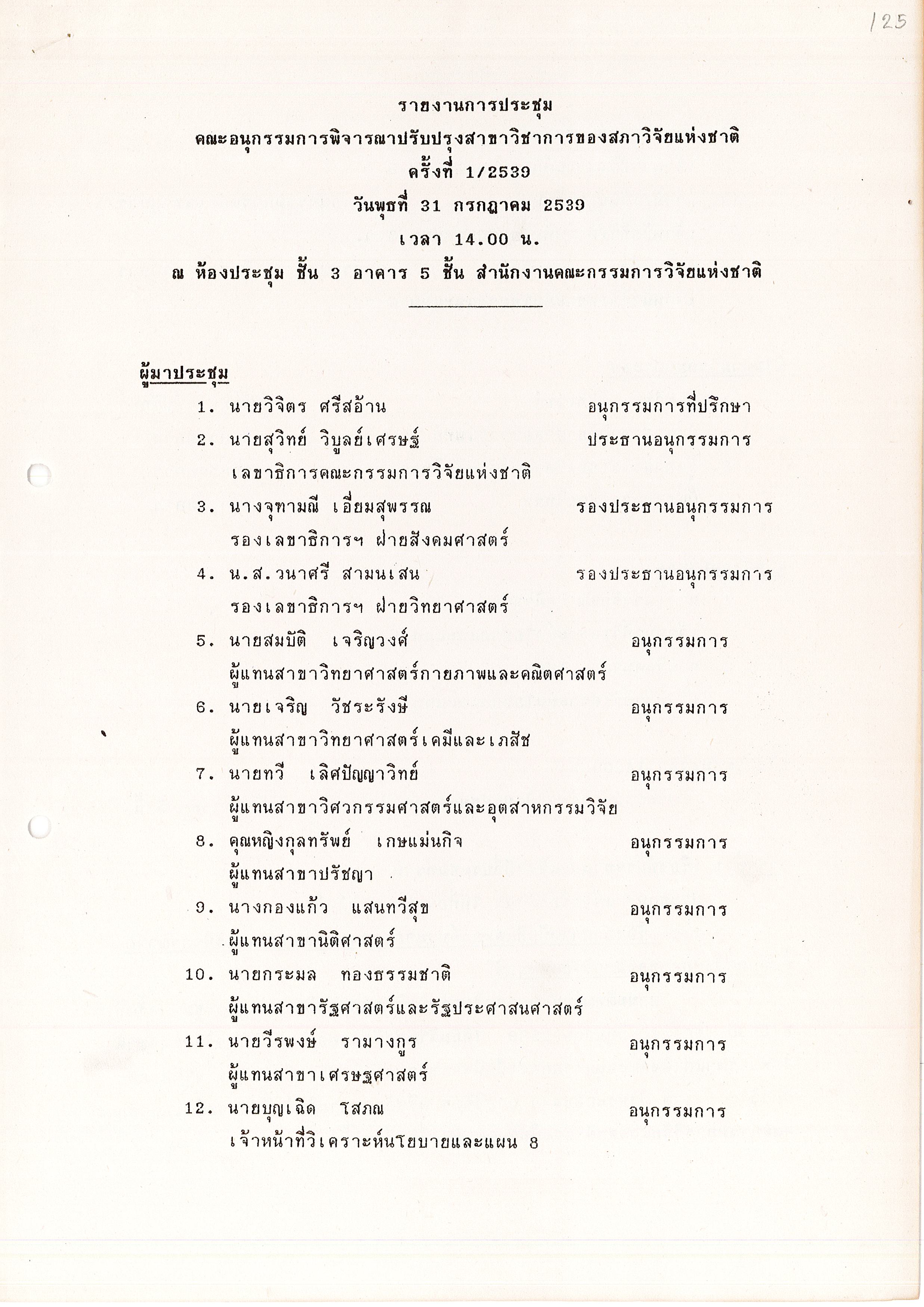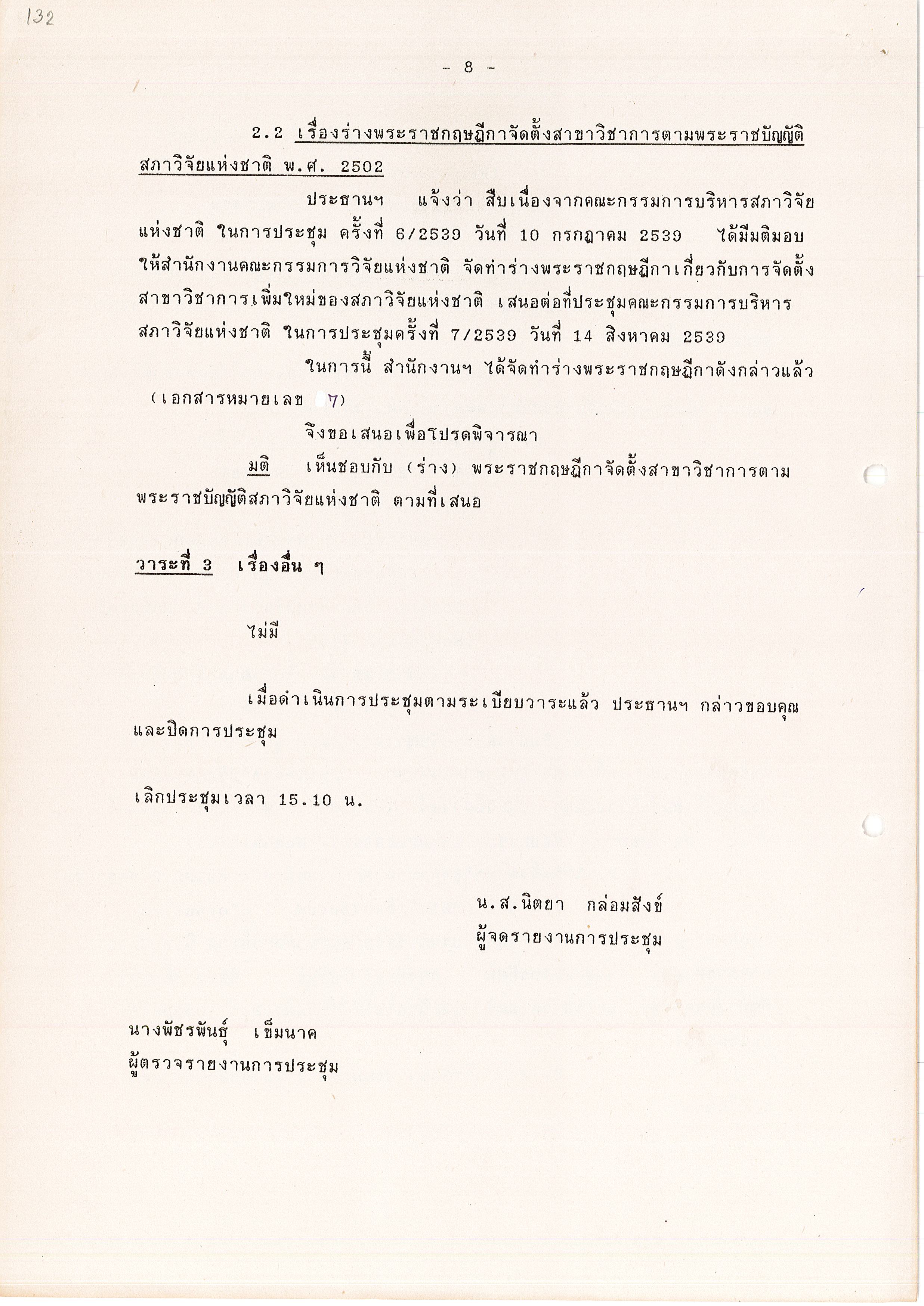 - ระเบียบวาระการประชุม คณะอนุกรรมการพิจารณาปรับปรุงสาขาวิชาการของสภาวิจัยแห่งชาติ ครั้งที่ 2/2539