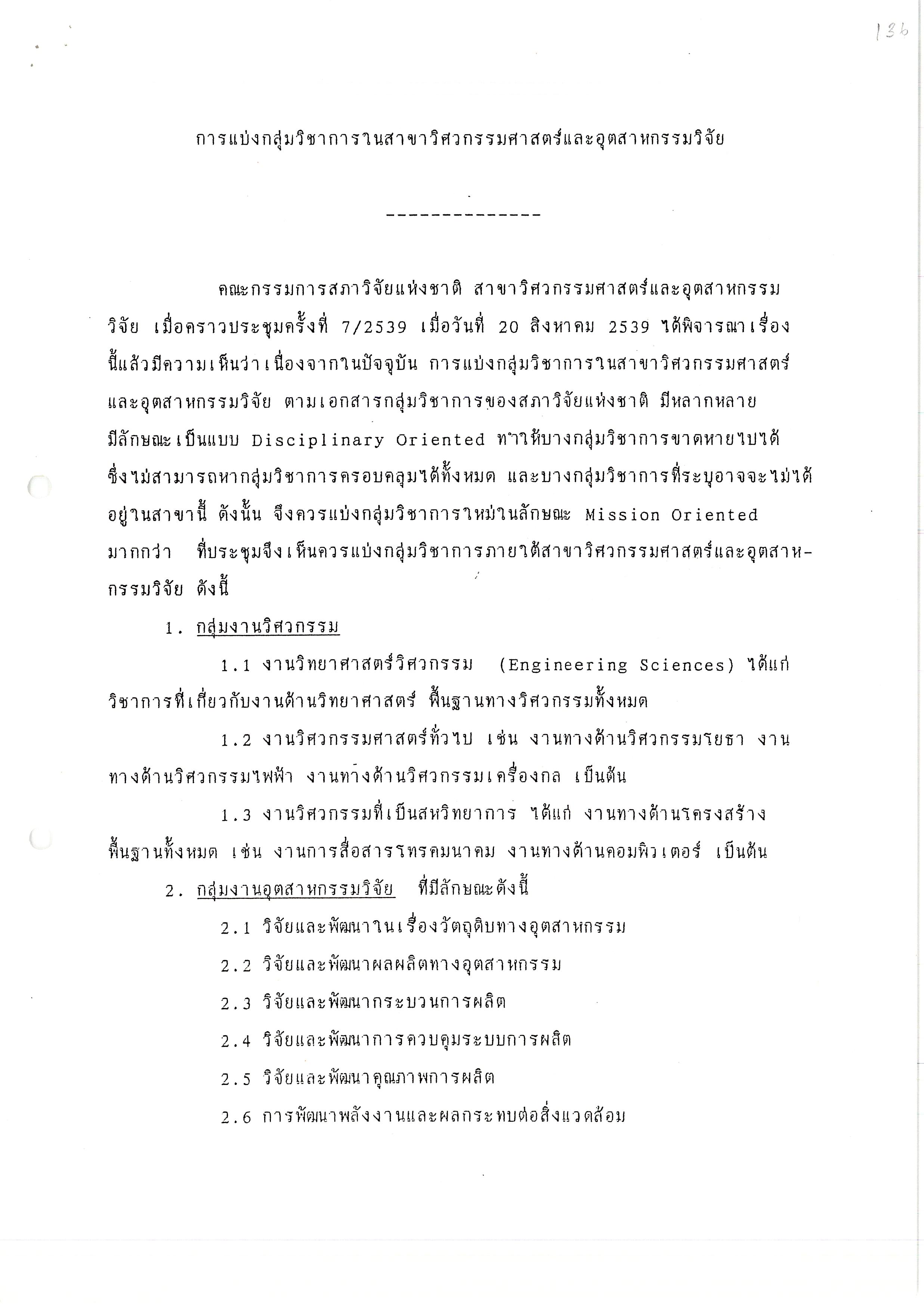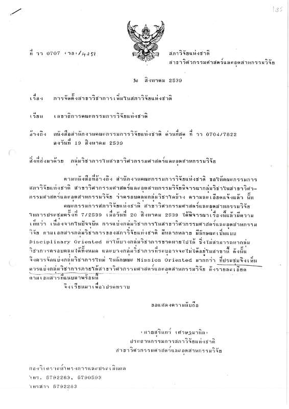 - การจัดตั้งสาขาวิชาการเพิ่มในสภาวิจัยแห่งชาติ