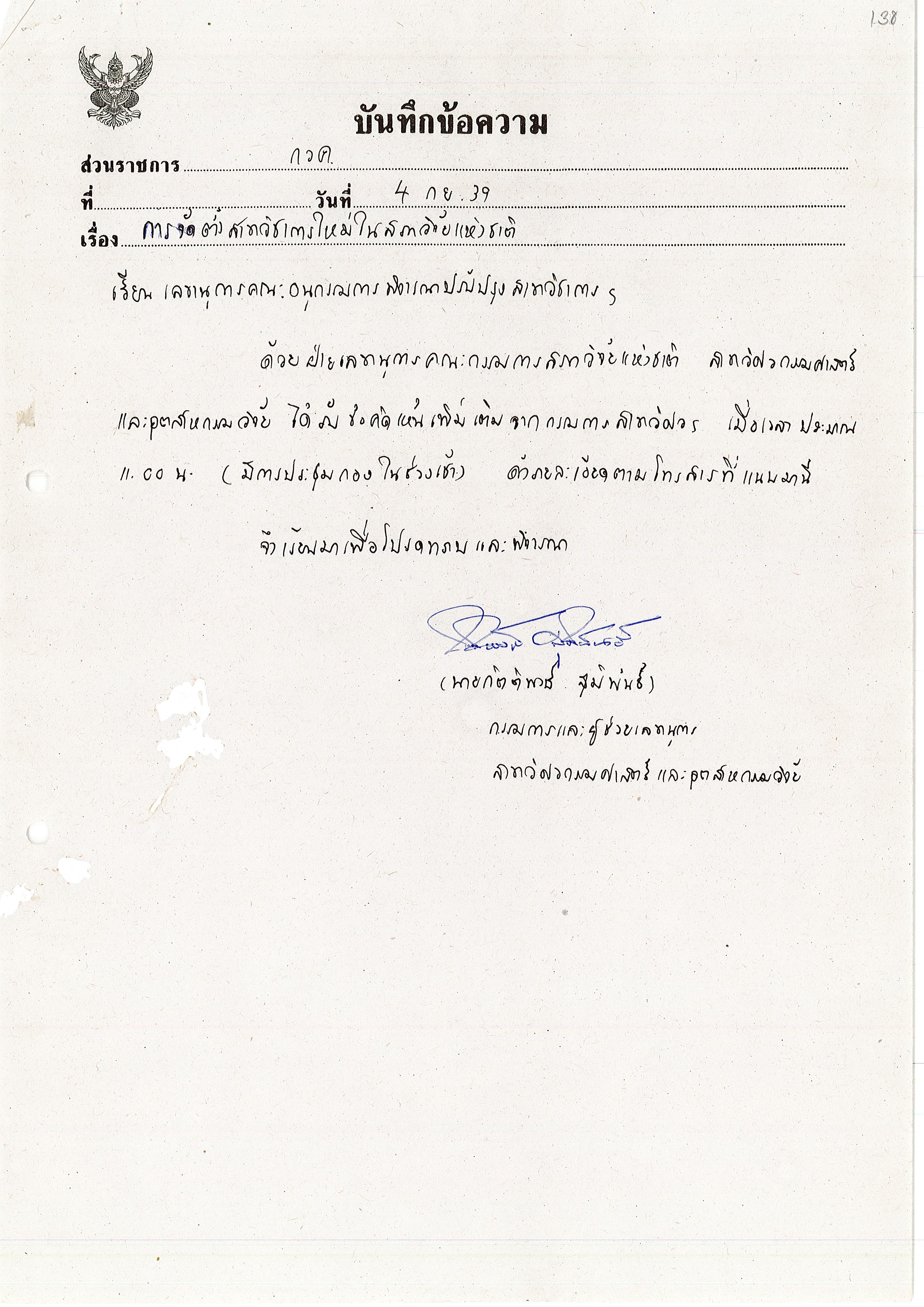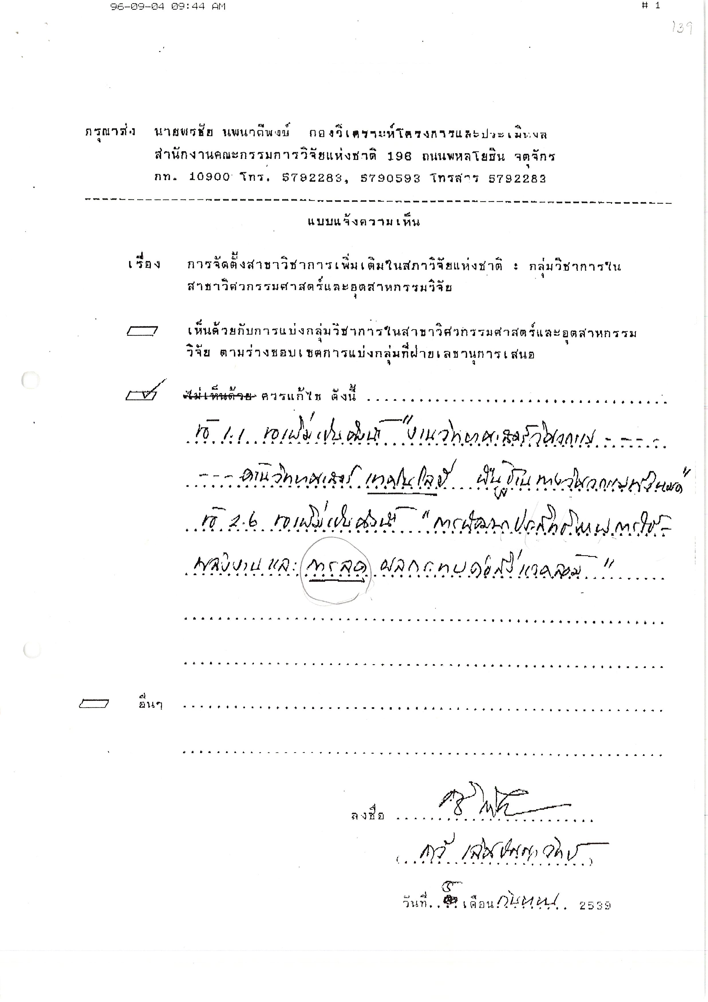 - การจัดตั้งสาขาวิชาการใหม่ในสภาวิจัยแห่งชาติ