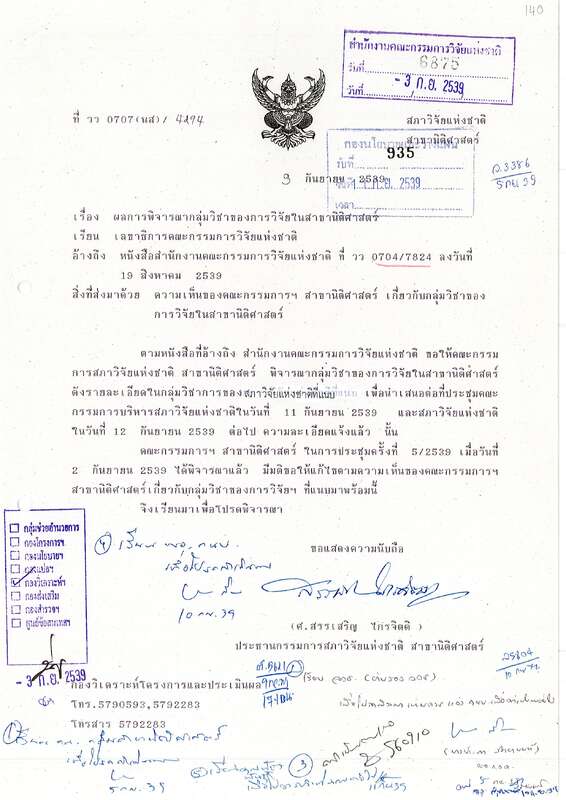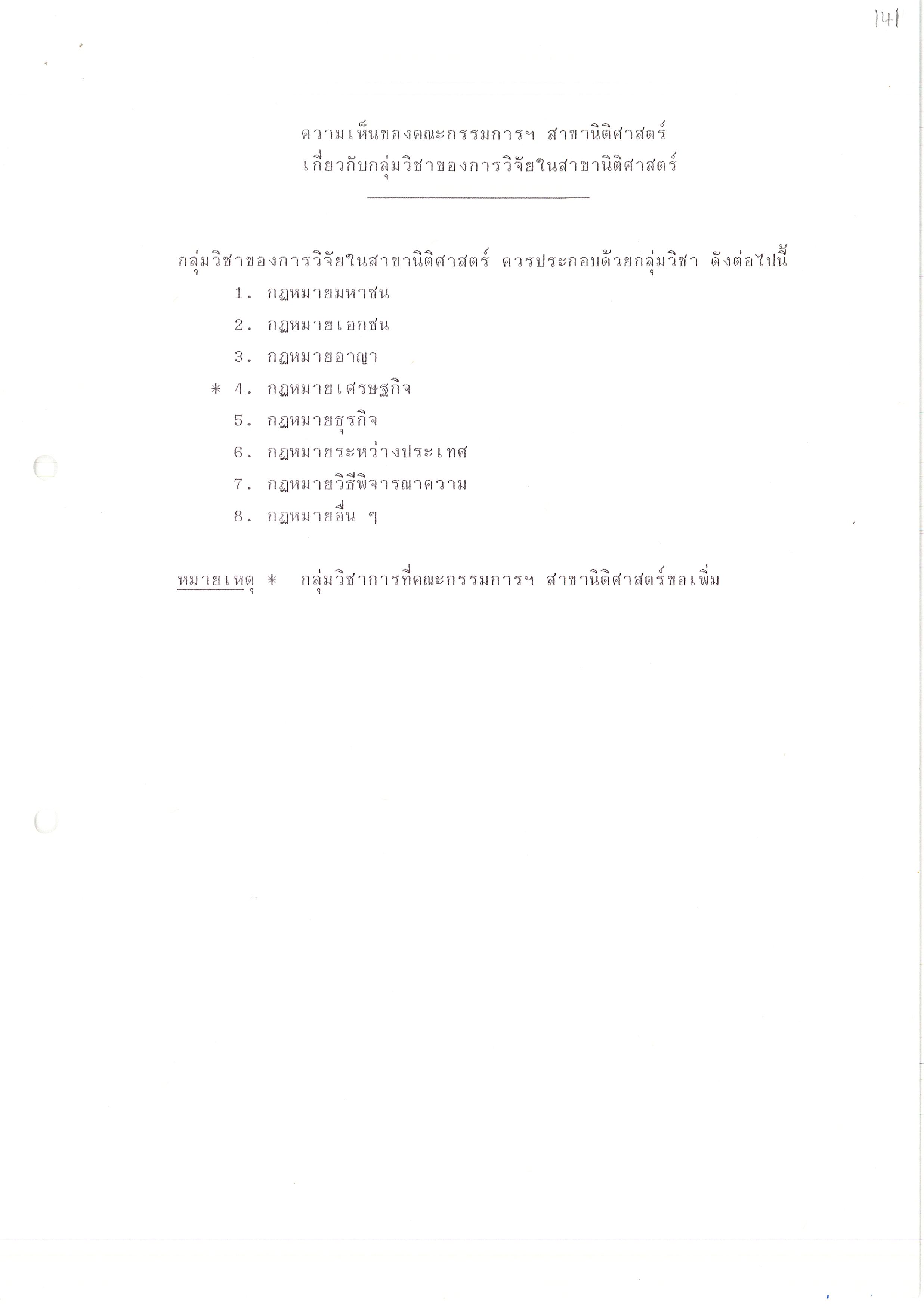 ผลการพิจารณากลุ่มวิชาของการวิจัยในสาขานิติศาสตร์