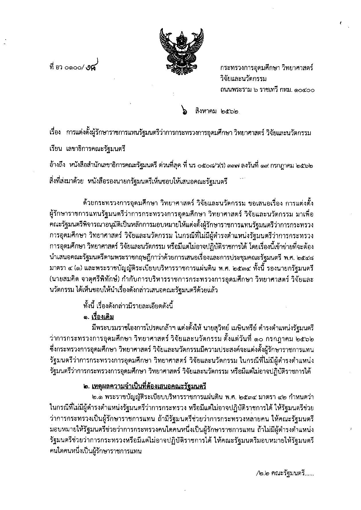 การแต่งตั้งผู้รักษาราชการแทนรัฐมนตรีว่าการกระทรวงอุดมศึกษา วิทยาศาสตร์ วิจัยและนวัตกรรม