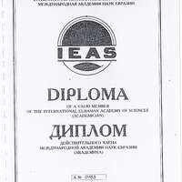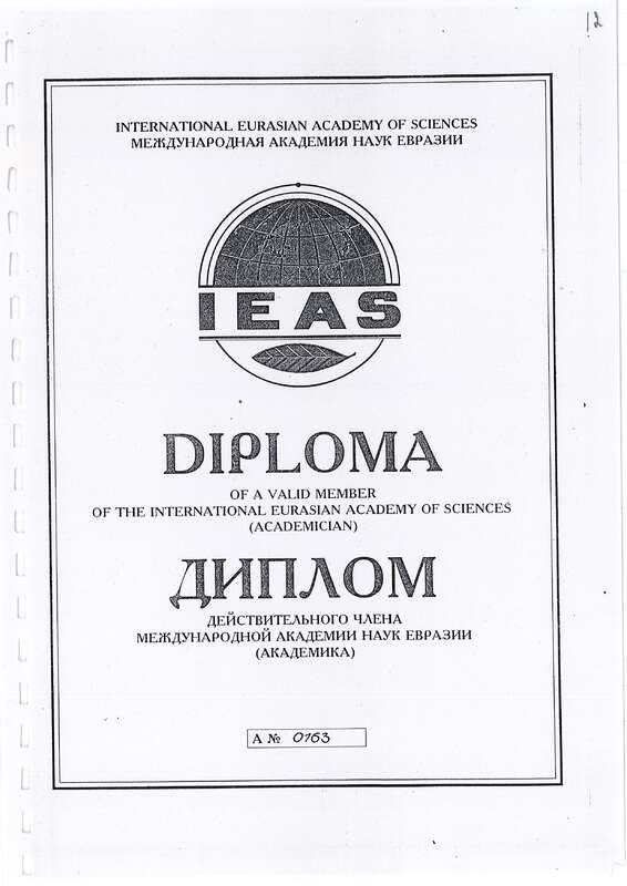 - Diploma of a valid member of the International Eurasian Academy of Sciences (Academician)