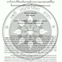 การวิเคราะห์ทัศนคติและพฤติกรรมการสมรสของสตรีไทย : ศึกษาเฉพาะกรณีของสตรีในเขตกรุงเทพมหานคร