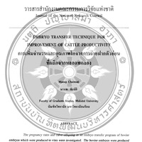 In the majority of cases, tile food-producing animals should be culled. There are, however, many genetically superior females which become infertile due to uterine or oviductal diseases or the old age, and in many instances embryo transfer technique can be used to obtain additional progeny from such animals. - ผู้จัดพิมพ์/สำนักพิมพ์