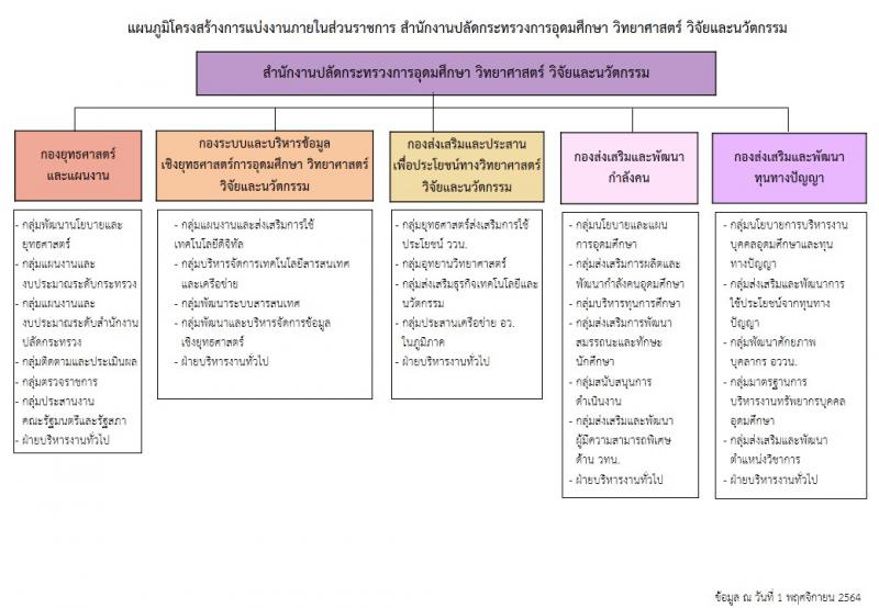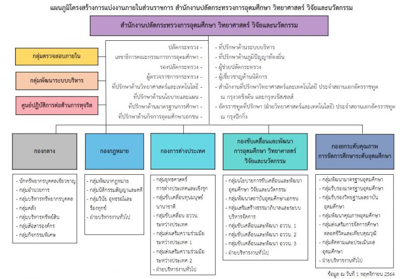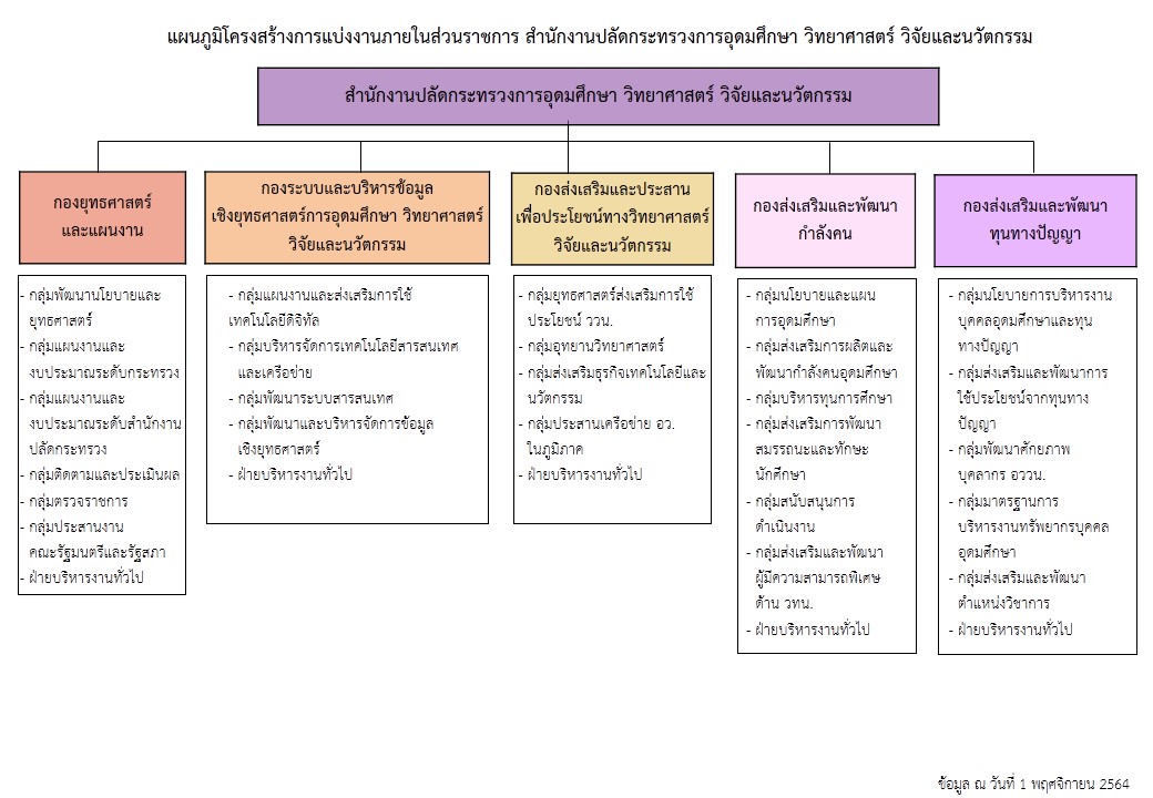 แผนภูมิโครงสร้างการแบ่งงานภายในส่วนราชการ สำนักงานปลัดกระทรวงการอุดมศึกษา วิทยาศาสตร์ วิจัยและนวัตกรรม