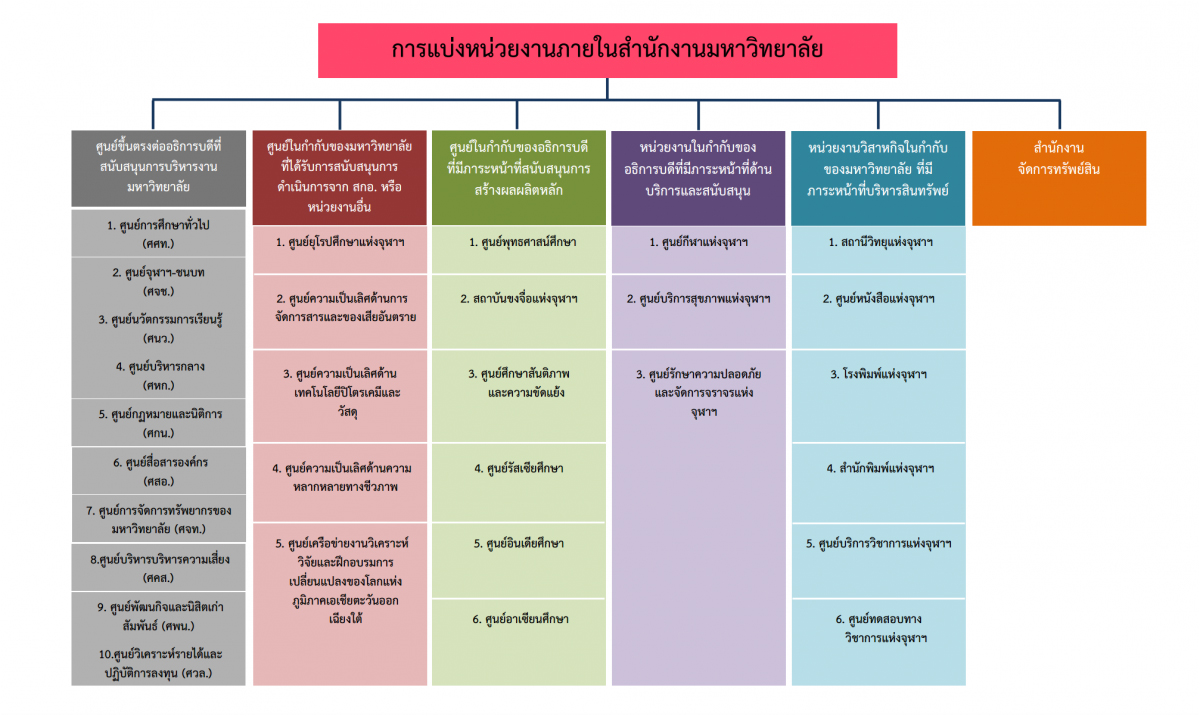 - แผนภาพการแบ่งหน่วยงานภายในสำนักงานมหาวิทยาลัย จุฬาลงกรณ์มหาวิทยาลัย