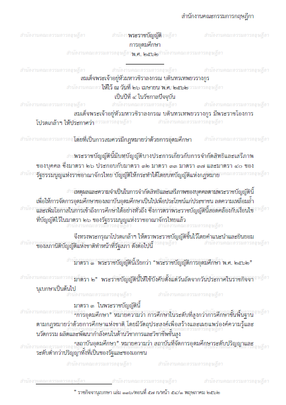 พระราชบัญญัติการอุดมศึกษา พ.ศ. 2562