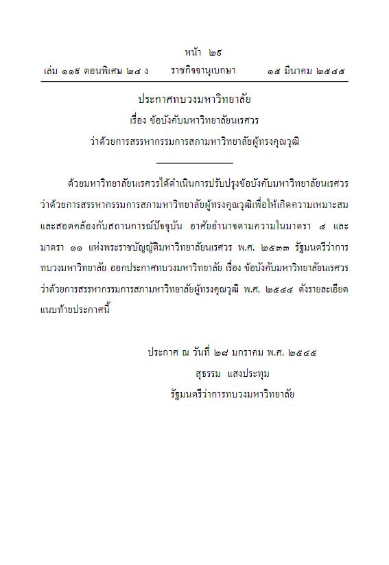 ประกาศทบวงมหาวิทยาลัย เรื่อง ข้อบังคับมหาวิทยาลัยนเรศวร ว่าด้วย การสรรหากรรมการสภามหาวิทยาลัยผู้ทรงคุณวุฒิ