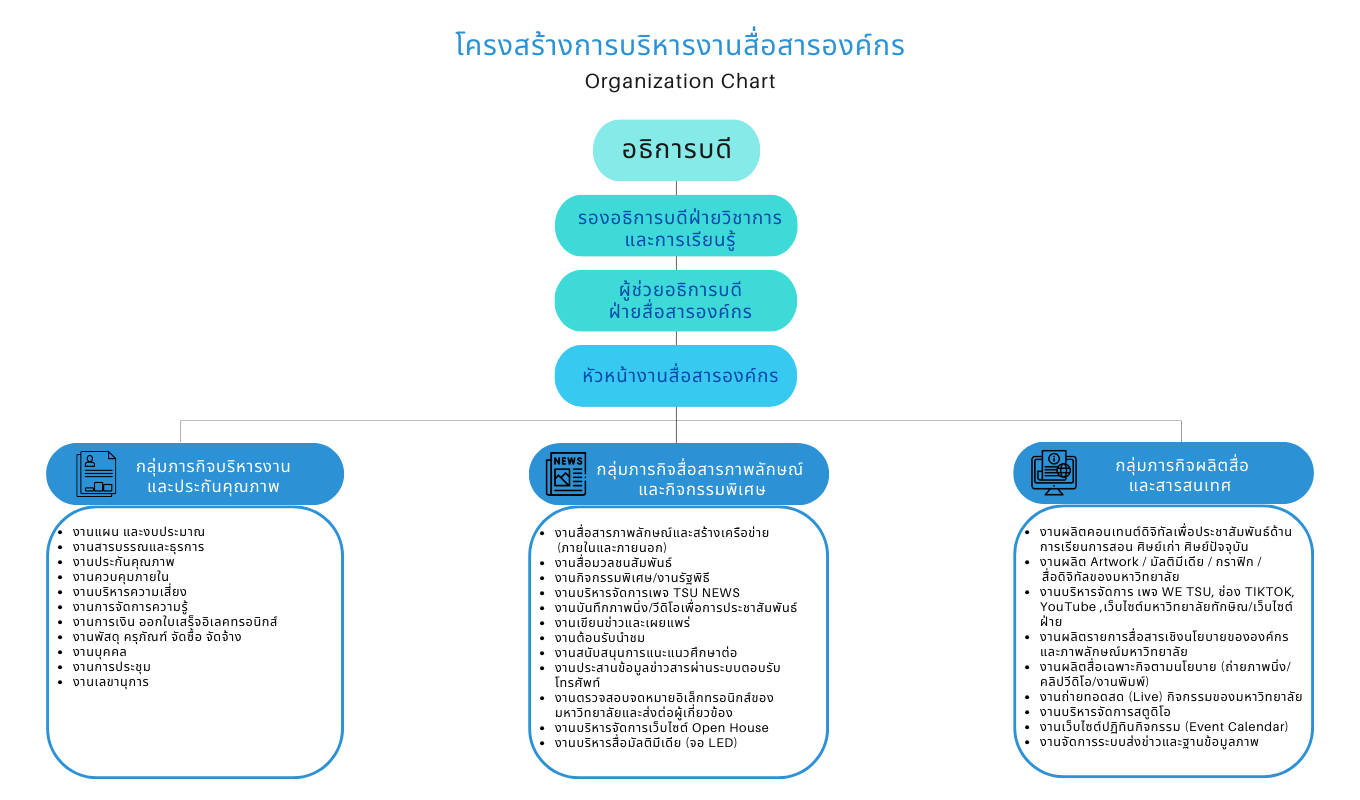 แผนผังโครงสร้างบริหารงานสื่อสารองค์กร มหาวิทยาลัยทักษิณ