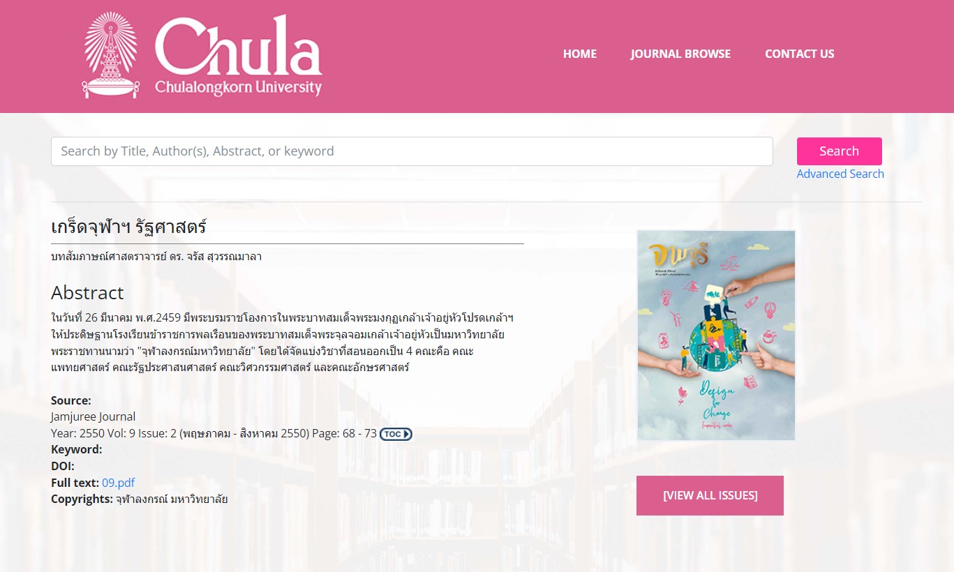 เกร็ดจุฬาฯ รัฐศาสตร์ : บทสัมภาษณ์ศาสตราจารย์ ดร. จรัส สุวรรณมาลา
