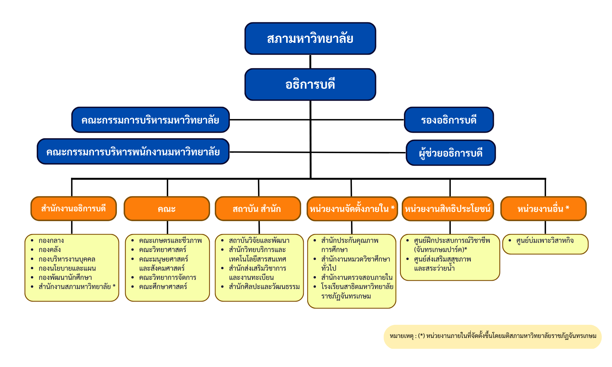 แผนภาพโครงสร้างการบริหาร โครงสร้างการแบ่งส่วนราชการมหาวิทยาลัยราชภัฏจันทรเกษม