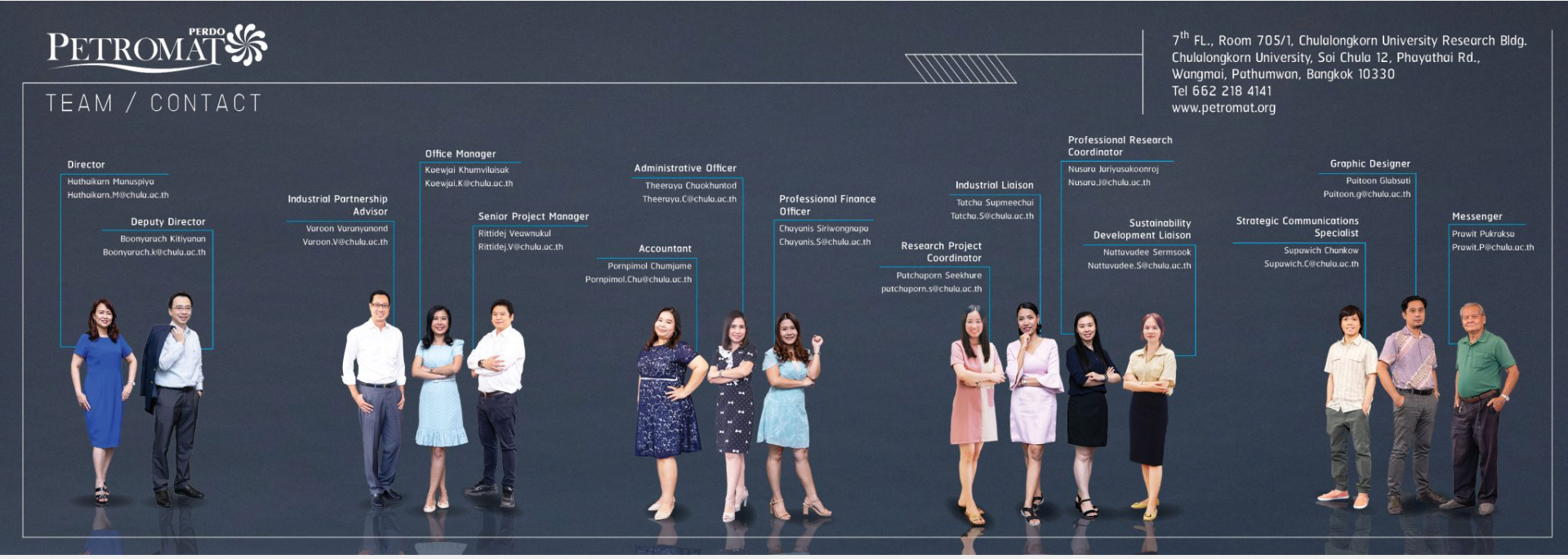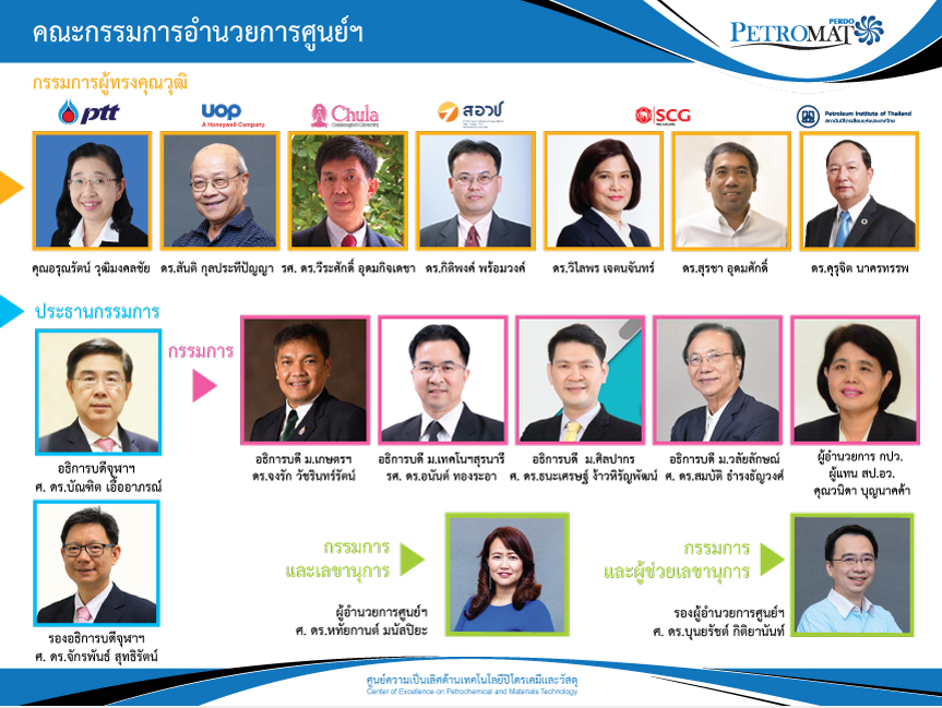 โครงสร้างองค์กรคณะผู้บริหารและเจ้าหน้าที่ ศูนย์ความเป็นเลิศด้านเทคโนโลยีปิโตรเคมีและวัสดุ จุฬาลงกรณ์มหาวิทยาลัย