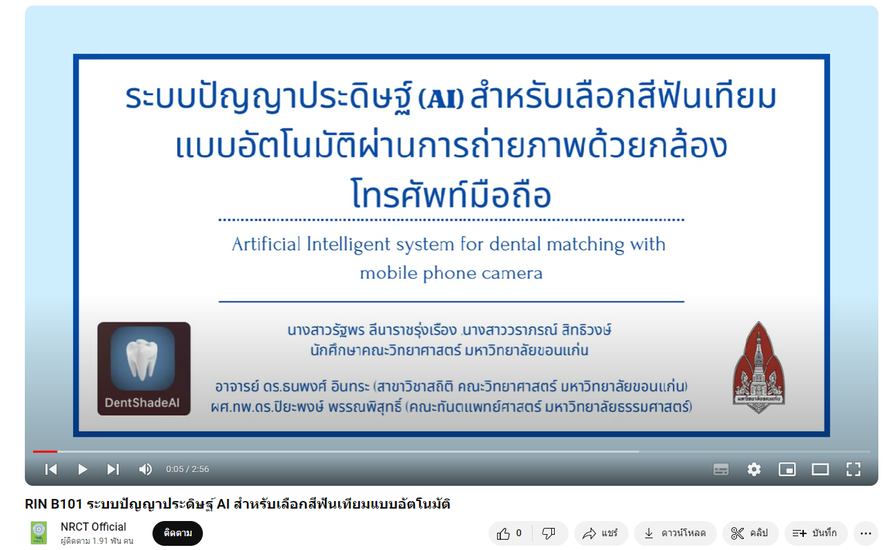 RIN B101 ระบบปัญญาประดิษฐ์ AI สำหรับเลือกสีฟันเทียมแบบอัตโนมัติ