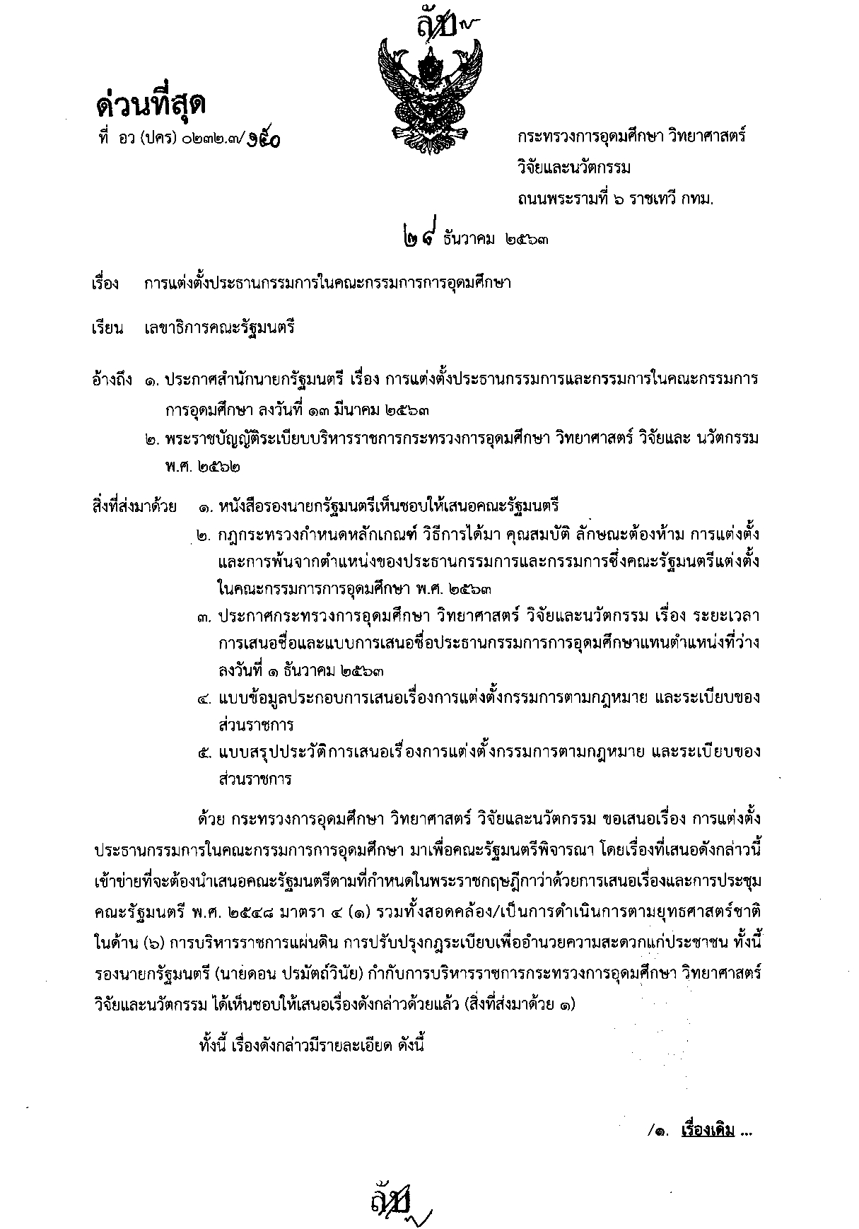 การแต่งตั้งประธานกรรมการในคณะกรรมการการอุดมศึกษา