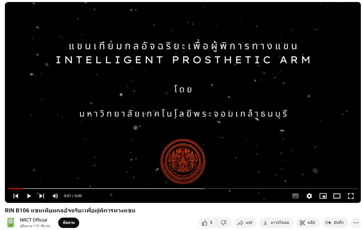 RIN B106 แขนเทียมกลอัจฉริยะเพื่อผู้พิการทางแขน