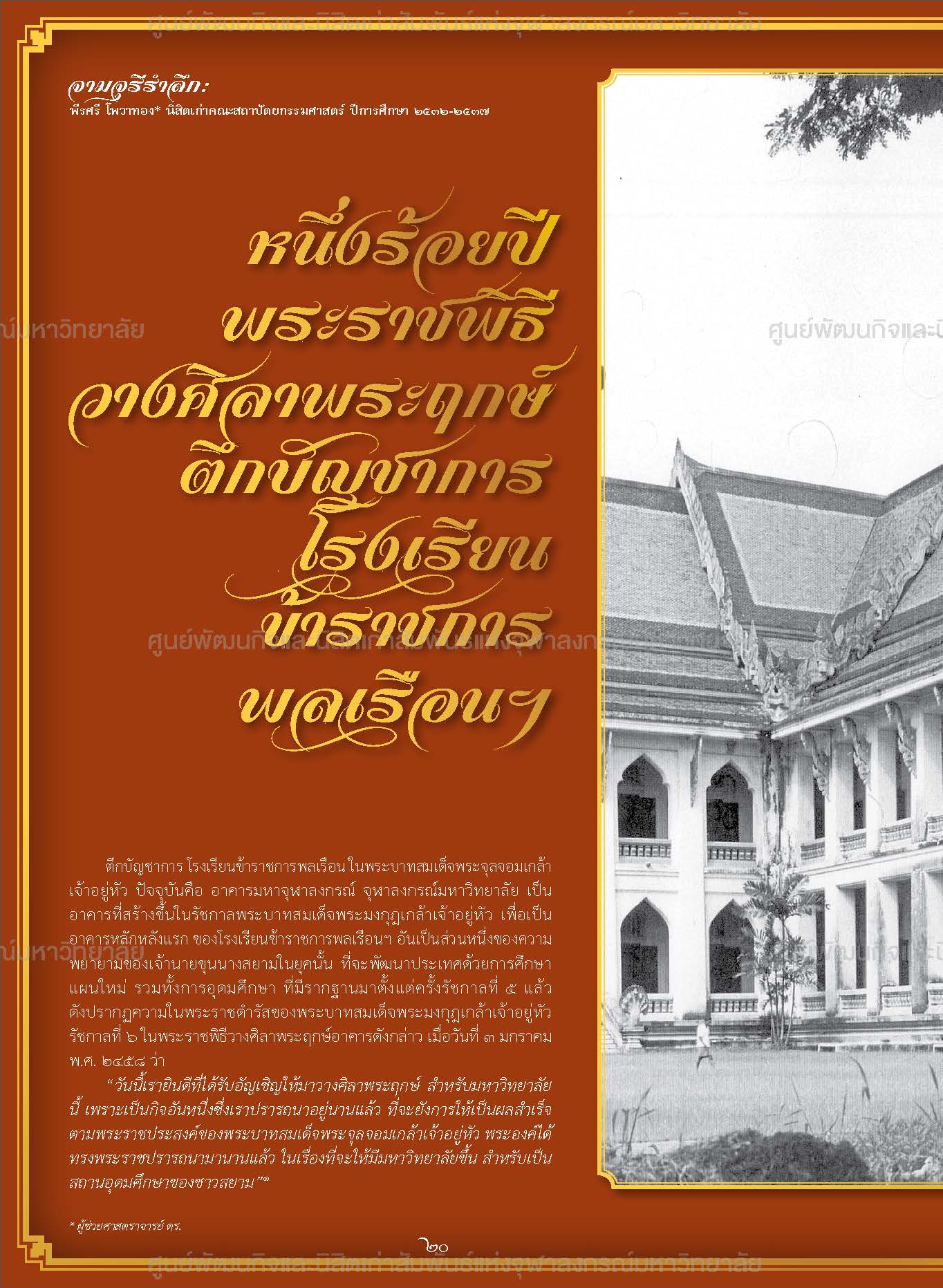 จามจุรีรำลึก : หนึ่งร้อยปีพระราชพิธีวางศิลาพระฤกษ์ ตึกบันชาการโรงเรียนข้าราชการพลเรือน