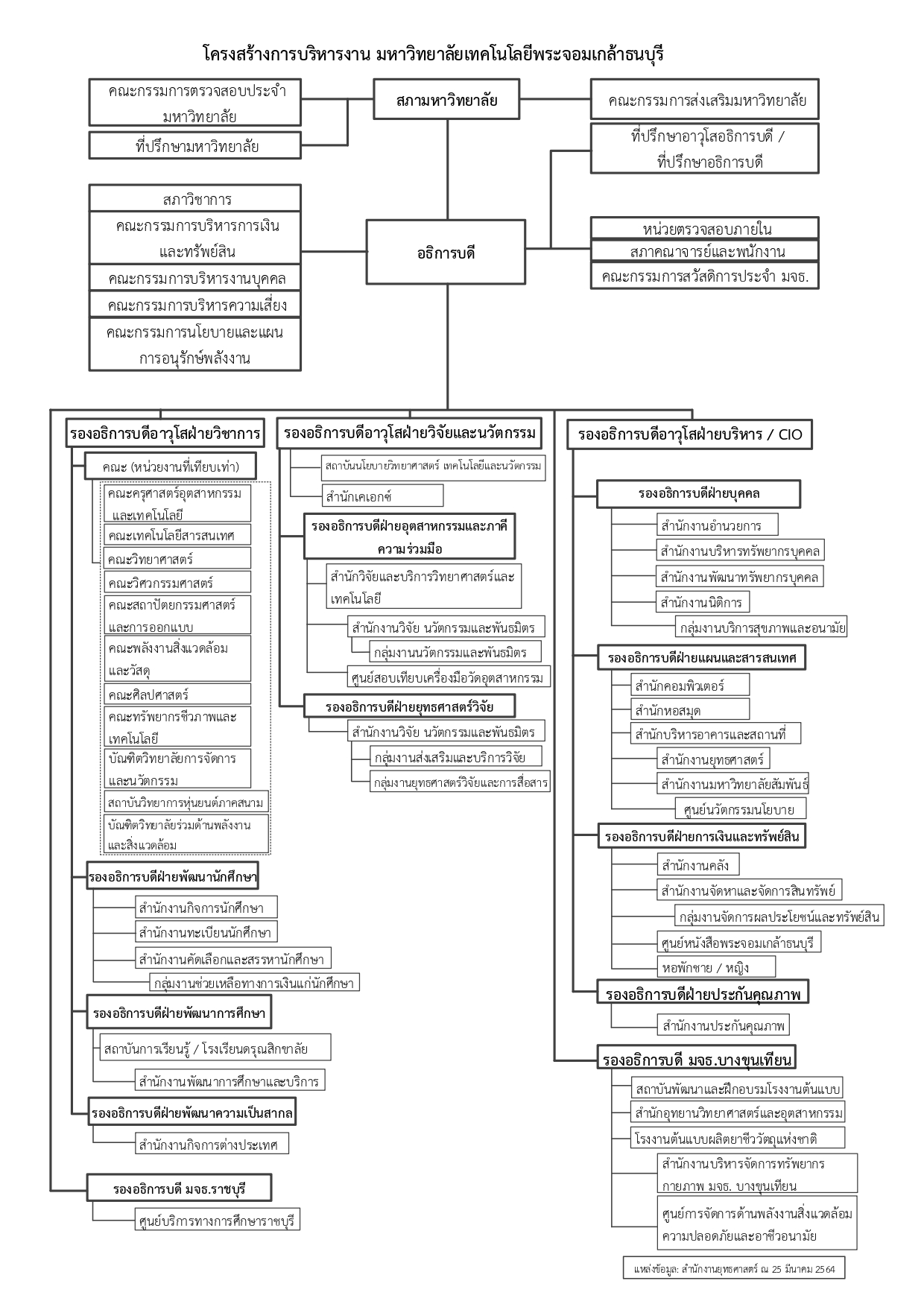 แผนผังโครงสร้างการบริหารงาน มหาวิทยาลัยเทคโนโลยีพระจอมเกล้าธนบุรี