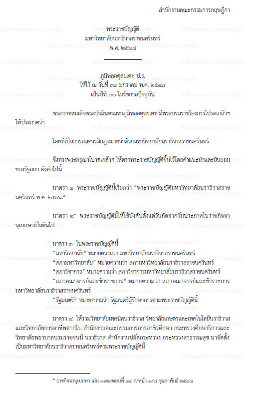 พระราชบัญญัติมหาวิทยาลัยนราธิวาสราชนครินทร์ พ.ศ. 2548