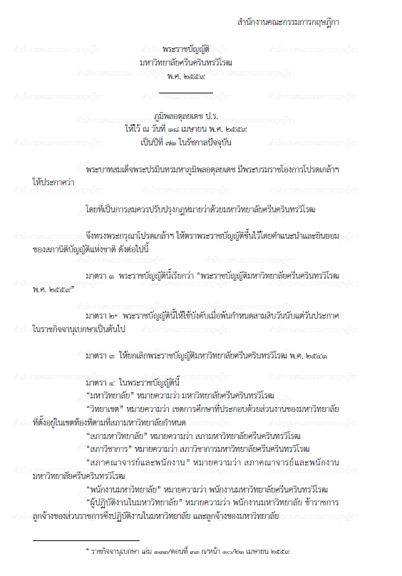 พระราชบัญญัติมหาวิทยาลัยศรีนครินทรวิโรฒ พ.ศ. 2559