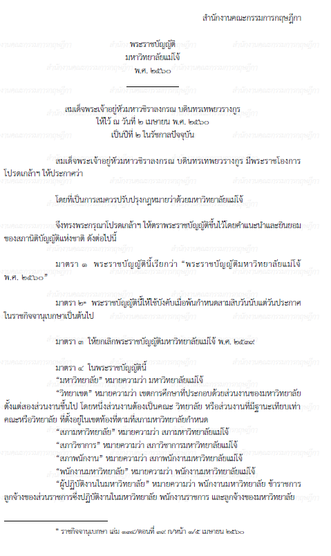 พระราชบัญญัติมหาวิทยาลัยแม่โจ้ พ.ศ. 2560
