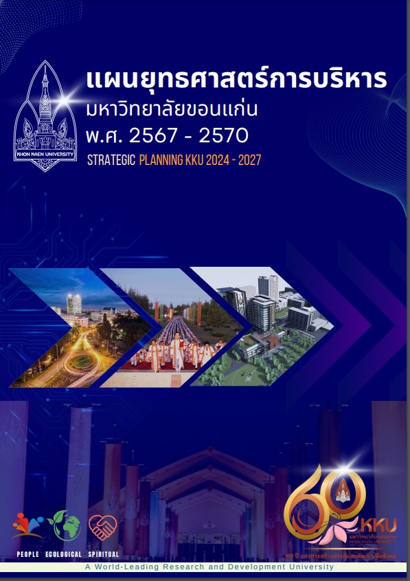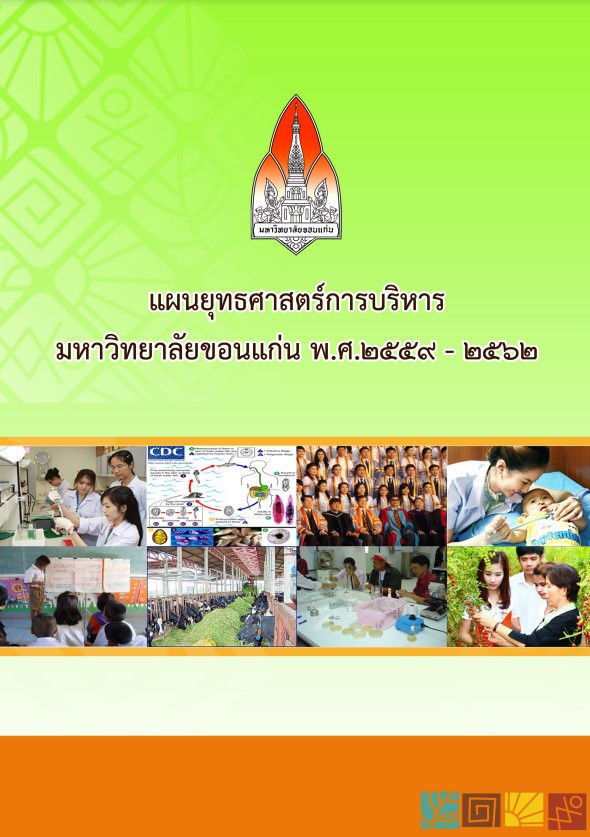 แผนยุทธศาสตร์การบริหารมหาวิทยาลัยขอนแก่น พ.ศ.2559-2562 ฉบับนี้จัดทำขึ้นเพื่อใช้เป็นแผนในการบริหารและพัฒนา เพื่อขับเคลื่อนมหาวิทยาลัยใน 4 ปีข้างหน้า โดยพัฒนาปรับปรุงจากข้อเสนอทิศทางกลยุทธ์ และแผนปฏิบัติการตามมติสภามหาวิทยาลัยขอนแก่นในคราวการประชุมครั้งที่ 7/2557 เมื่อวันที่ 2 กรกฎาคม 2557 และประกาศสภามหาวิทยาลัยขอนแก่น ฉบับที่ 6/2557 โดย รศ.ดร.กิตติชัย ไตรรัตนศิริชัย ผู้เข้ารับการสรรหาอธิการบดีมหาวิทยาลัยขอนแก่นในขณะนั้น ซึ่งแผนดังกล่าวเกิดจากการประมวลผลสัมฤทธิ์จากการบริหารงานและการดำเนินงานตามแผนยุทธศาสตร์การพัฒนามหาวิทยาลัยขอนแก่น พ.ศ.2554-2558 รายงานผลการติดตามและประเมินผลงานของอธิการบดี พันธกิจและนโยบายในการบริหารและพัฒนามหาวิทยาลัย (พ.ศ.2559-2562) การวิเคราะห์จุดแข็ง จุดอ่อน โอกาส และภาวะคุกคาม (SWOT Analysis) ของมหาวิทยาลัย การวิเคราะห์สถานการณ์แวดล้อมการบริหารกิจการมหาวิทยาลัยในศตวรรษที่ 21 บริบทใหม่ของโลก อาทิ การเกิดประชาคมอาเซียน (ASEAN Community) การเพิ่มขึ้นของประชากรโลก ความมั่นคงด้านทรัพยากรอาหาร พลังงาน น้ า และการเปลี่ยนแปลงภูมิอากาศ ปัจจัยแวดล้อมที่มีผลกระทบ เป็นต้น นอกจากนี้ยังได้รับฟังความคิดเห็นจากประชาคมและภาคส่วนต่าง ๆ 6 กลุ่ม เพื่อนำข้อคิดเห็นเสนอแนะมาปรับปรุงแผนยุทธศาสตร์ฯ ดังกล่าวในช่วงเดือนกุมภาพันธ์ 2558 ถึงเดือนมีนาคม 2558 ก่อนนำเสนอขอความเห็นชอบจากที่ประชุมคณะกรรมการบริหารมหาวิทยาลัยขอนแก่น และที่ประชุมสภามหาวิทยาลัยตามลำดับ -