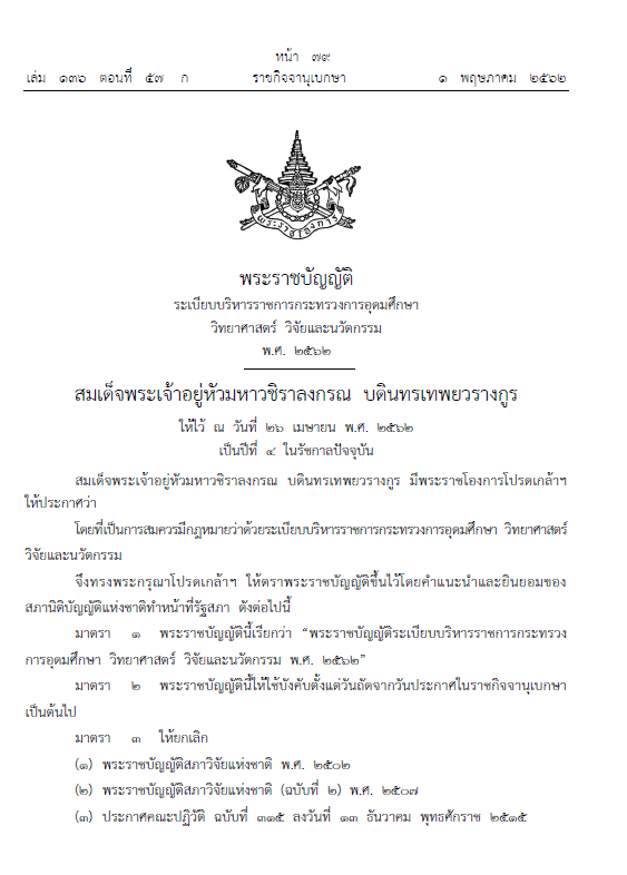 พระราชบัญญัติระเบียบบริหารราชการกระทรวงการอุดมศึกษา วิทยาศาสตร์ วิจัยและนวัตกรรม พ.ศ. 2562