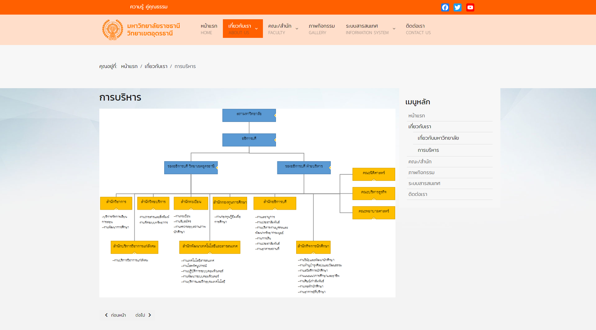แผนภาพโครงสร้างการบริหารองค์กรของมหาวิทยาลัยราชธานี