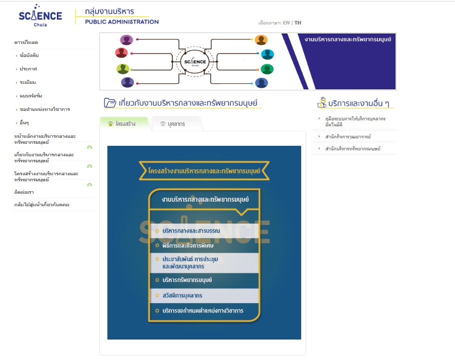 แผนผังโครงสร้างงานบริหารกลางและทรัพยากรมนุษย์ คณะวิทยาศาสตร์ จุฬาลงกรณ์มหาวิทยาลัย -