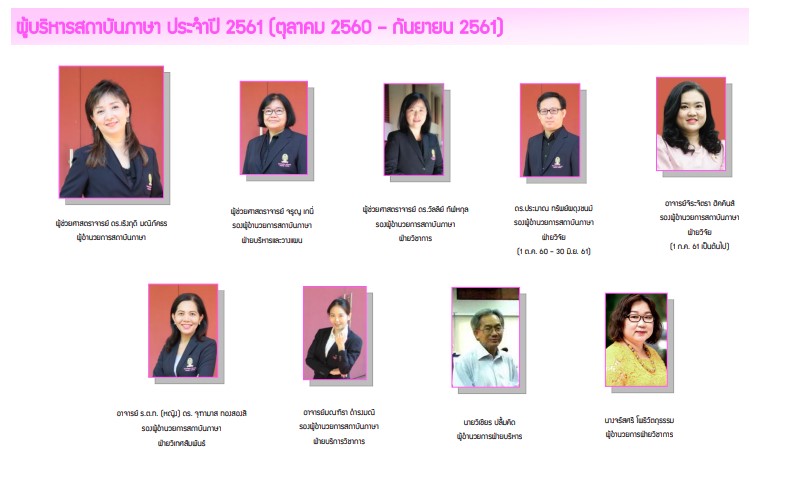 โครงสร้างผู้บริหารสถาบันภาษา ประจำปี 2561 (ตุลาคม 2560 - กันยายน 2561)