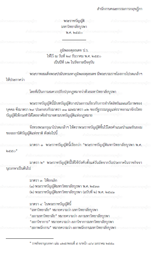 พระราชบัญญัติมหาวิทยาลัยบูรพา พ.ศ. 2550