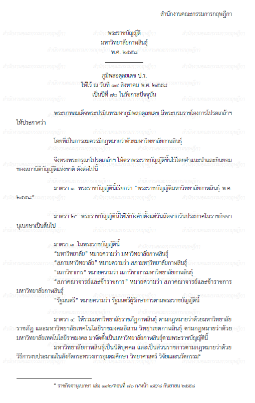 พระราชบัญญัติมหาวิทยาลัยกาฬสินธุ์ พ.ศ. 2558