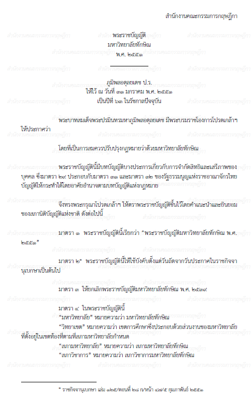 พระราชบัญญัติมหาวิทยาลัยทักษิณ พ.ศ. 2551