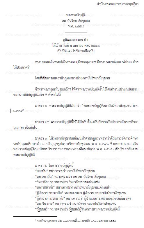 พระราชบัญญัติสถาบันวิทยาลัยชุมชน พ.ศ. 2558