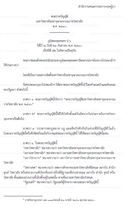 พระราชบัญญัติมหาวิทยาลัยเทคโนโลยีพระจอมเกล้าพระนครเหนือ พ.ศ. 2550