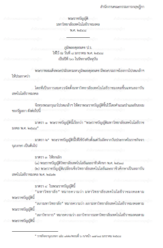 พระราชบัญญัติมหาวิทยาลัยเทคโนโลยีราชมงคล พ.ศ. 2548