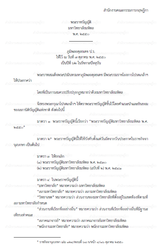 พระราชบัญญัติมหาวิทยาลัยมหิดล พ.ศ. 2550