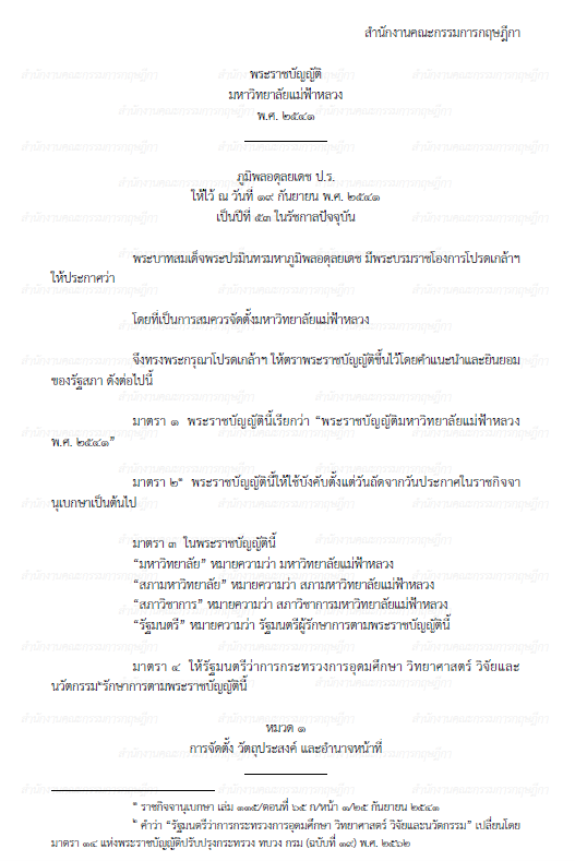 พระราชบัญญัติมหาวิทยาลัยแม่ฟ้าหลวง พ.ศ. 2541