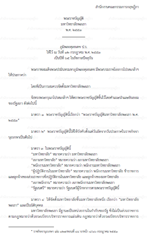 พระราชบัญญัติมหาวิทยาลัยพะเยา พ.ศ. 2553
