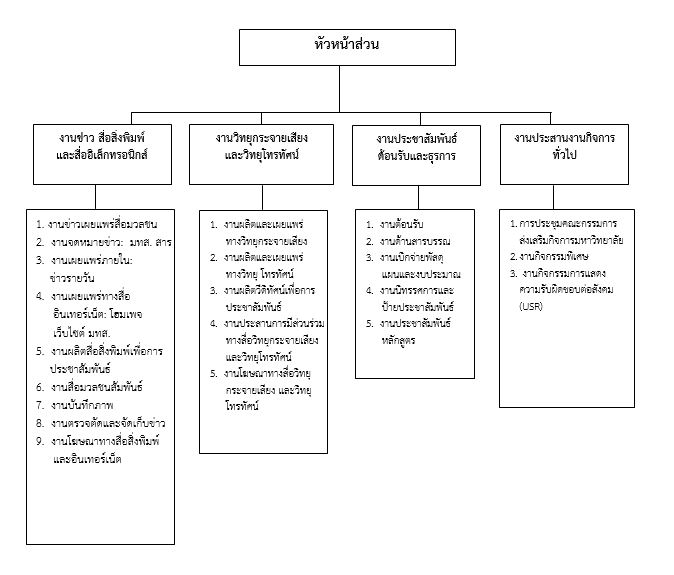 แผนภูมิโครงสร้างองค์กรส่วนประชาสัมพันธ์ มหาวิทยาลัยเทคโนโลยีสุรนารี