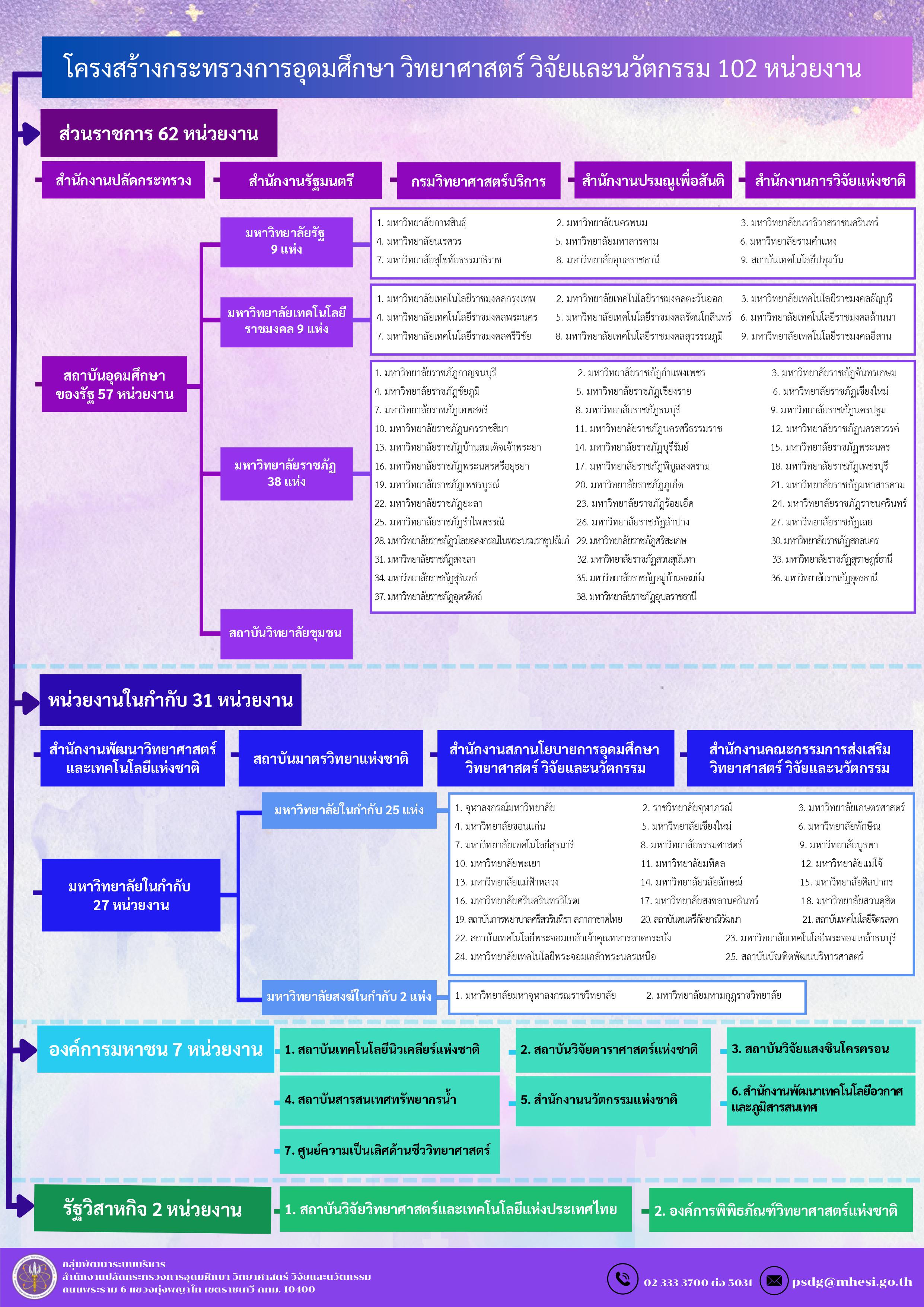 โครงสร้างกระทรวงการอุดมศึกษา วิทยาศาสตร์ วิจัยและนวัตกรรม 102 หน่วยงาน