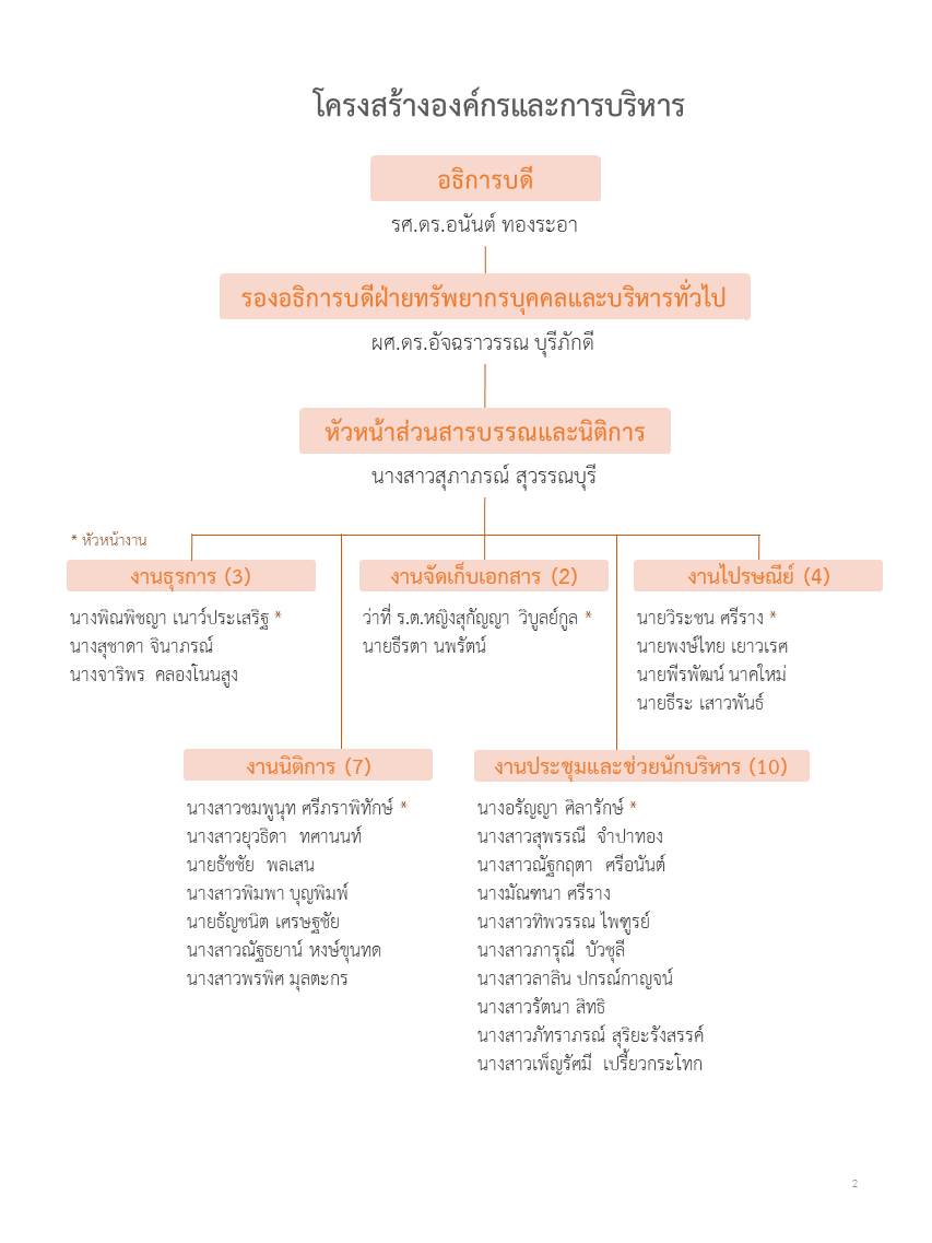 โครงสร้างองค์กรและการบริหาร ส่วนสารบรรณและนิติการ มหาวิทยาลัยเทคโนโลยีสุรนารี